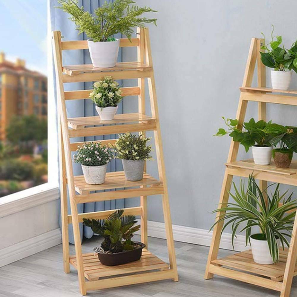 Ladder Plant Flower Pot Shelf Stand Bookcase Garden Storage Rack Display Folding