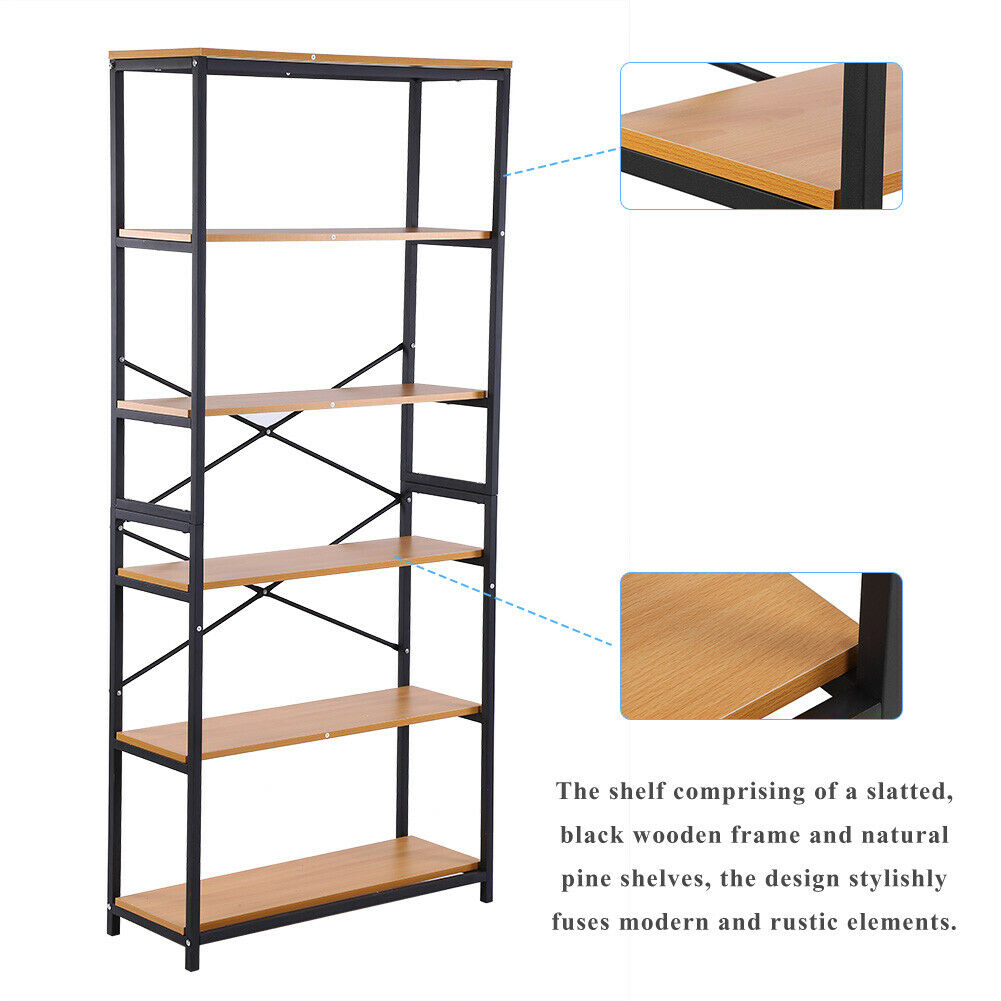 Ladder Shelf Bookcase Bookshelf Industrial 6 Tiers Storage Rack Shelving Unit