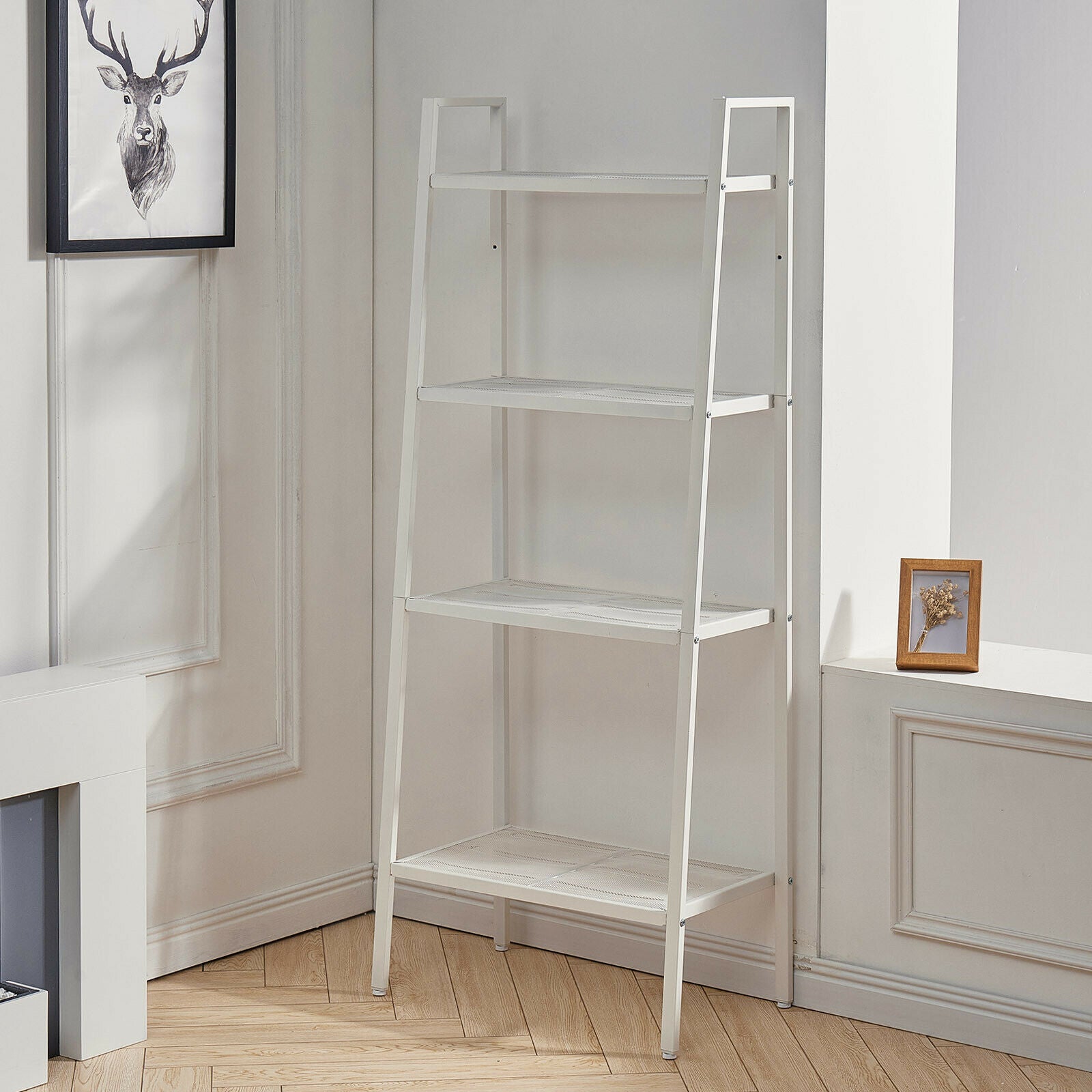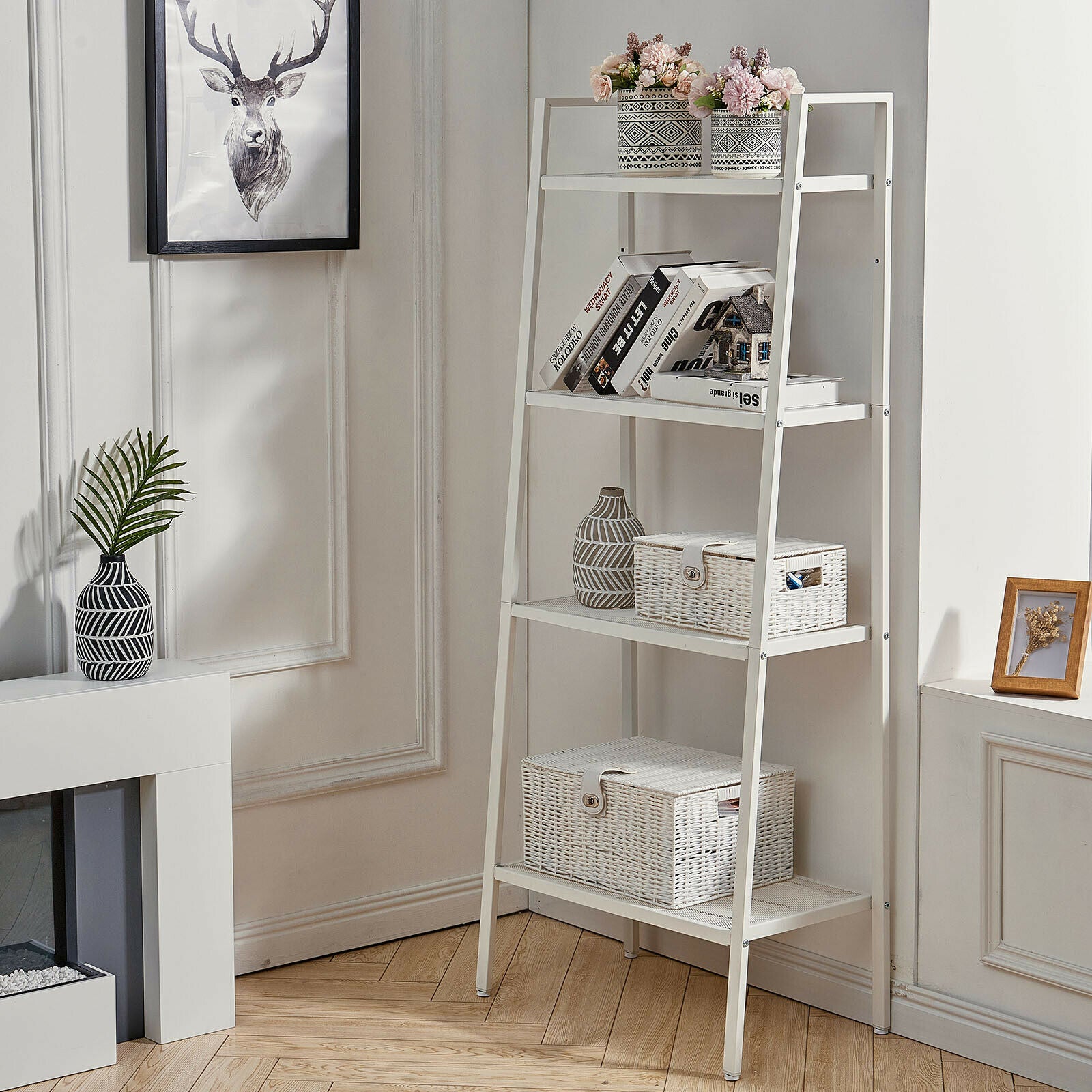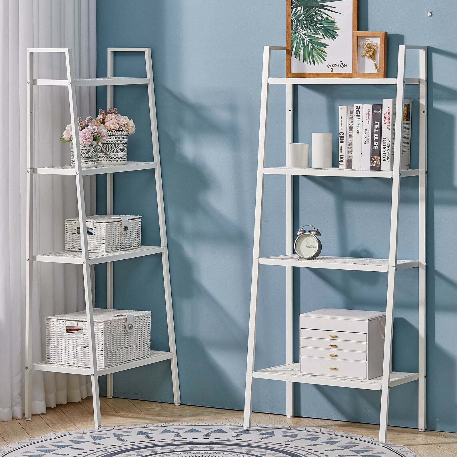 Metal Ladder Shelving 4 Tier Tall Bookshelf Plant Stand Storage Shelf Unit White