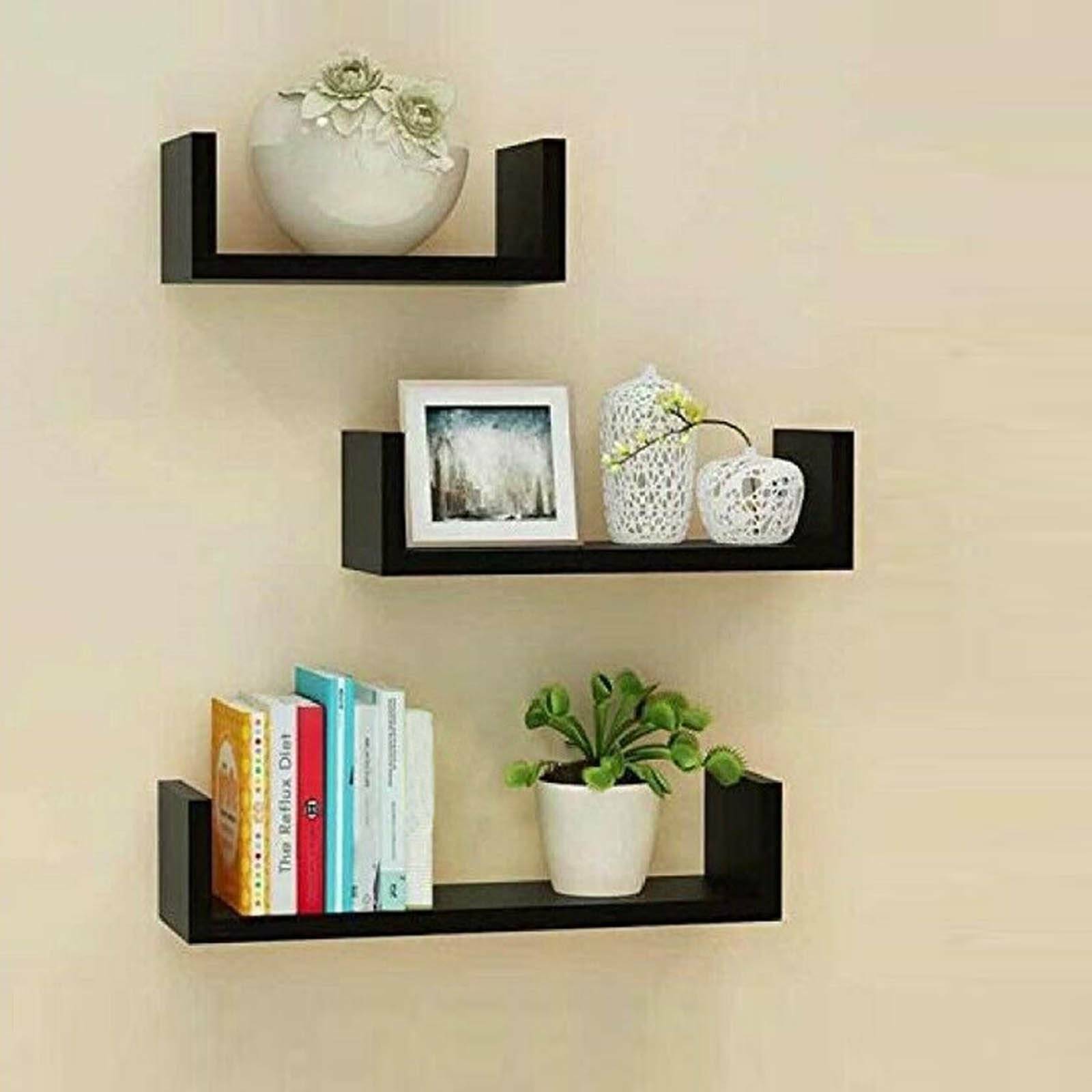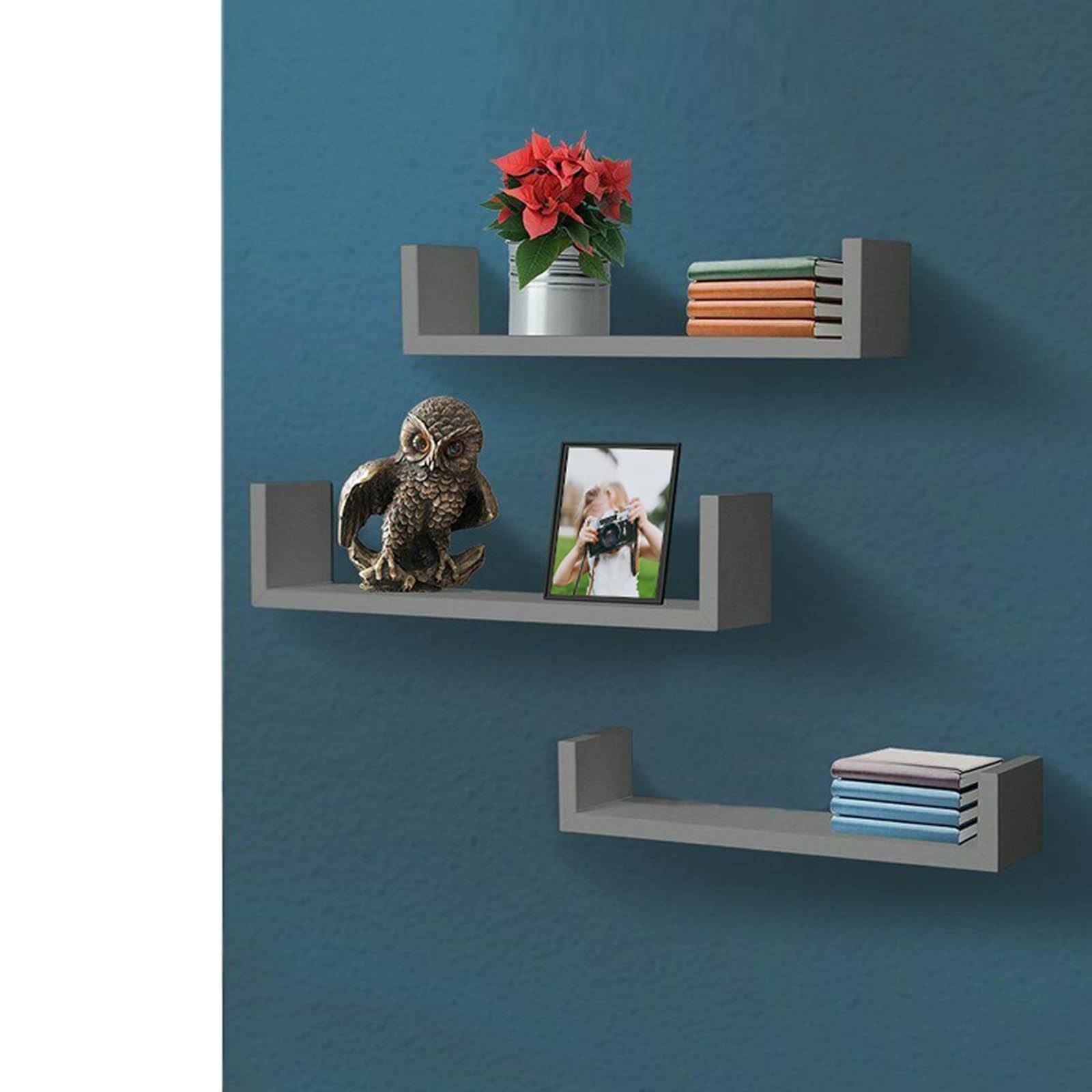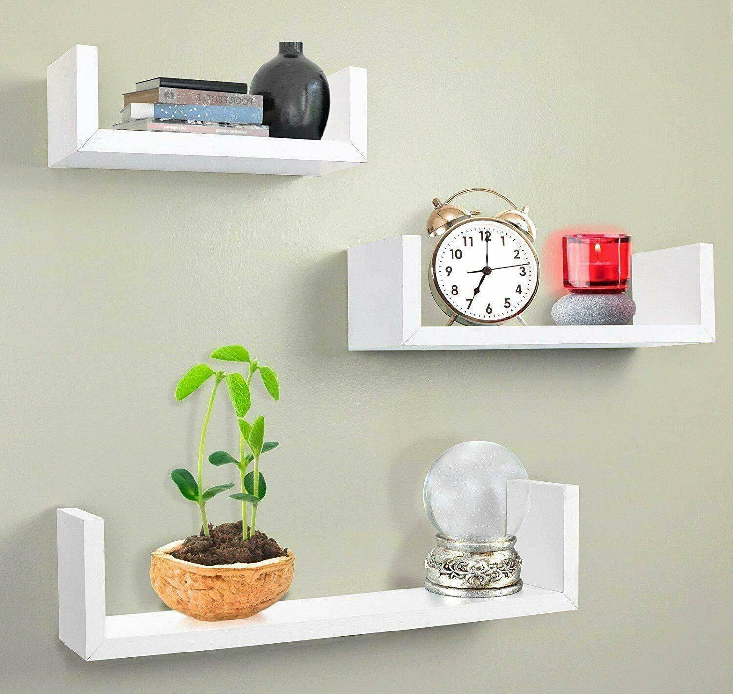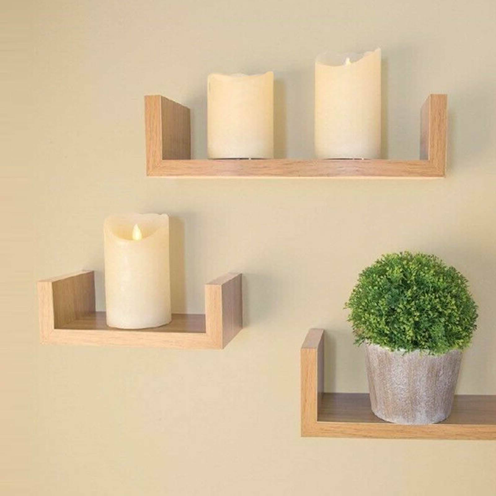 Set of 3 U Shape shelves Floating Wall Shelve Home Decor Storage Wood Shelf Unit