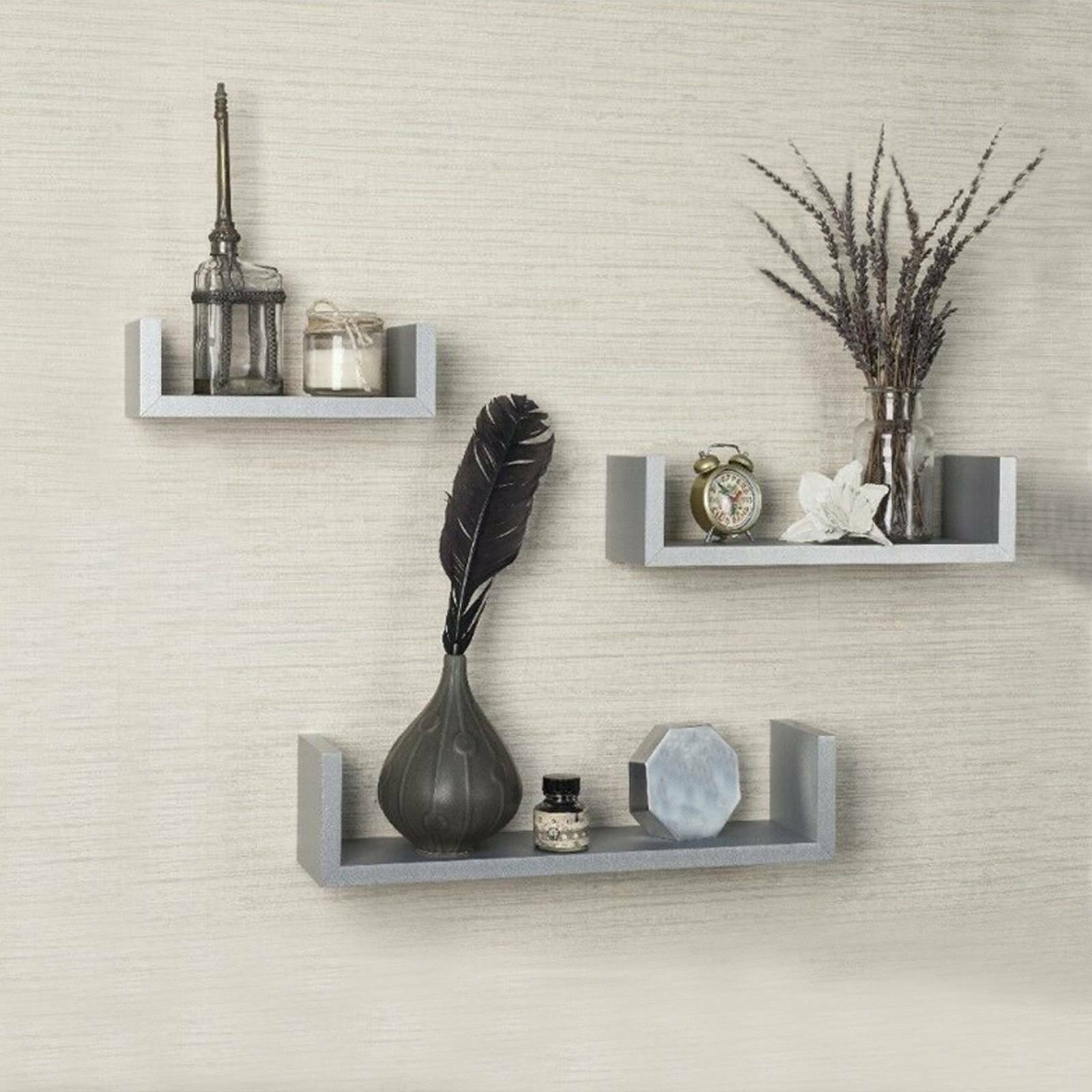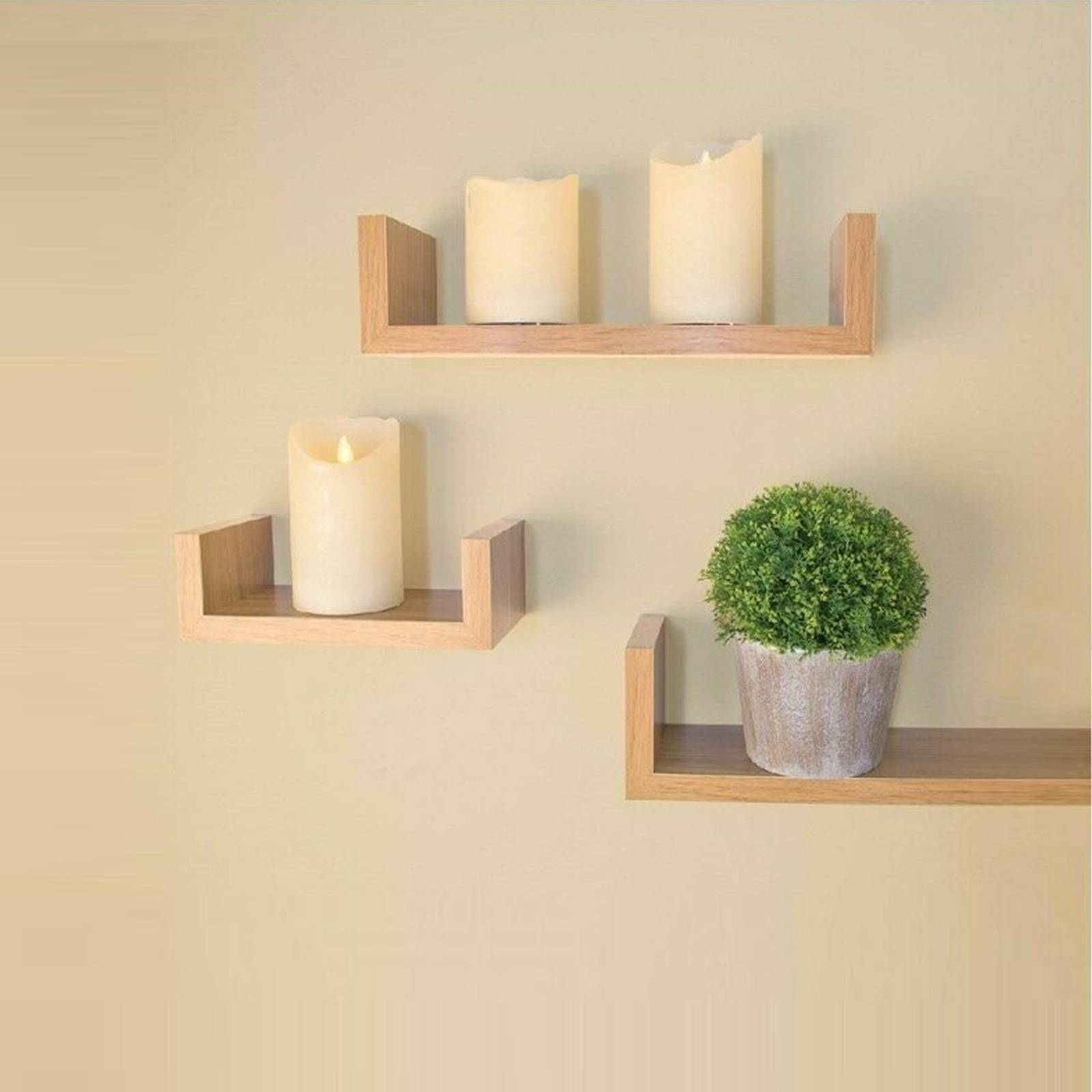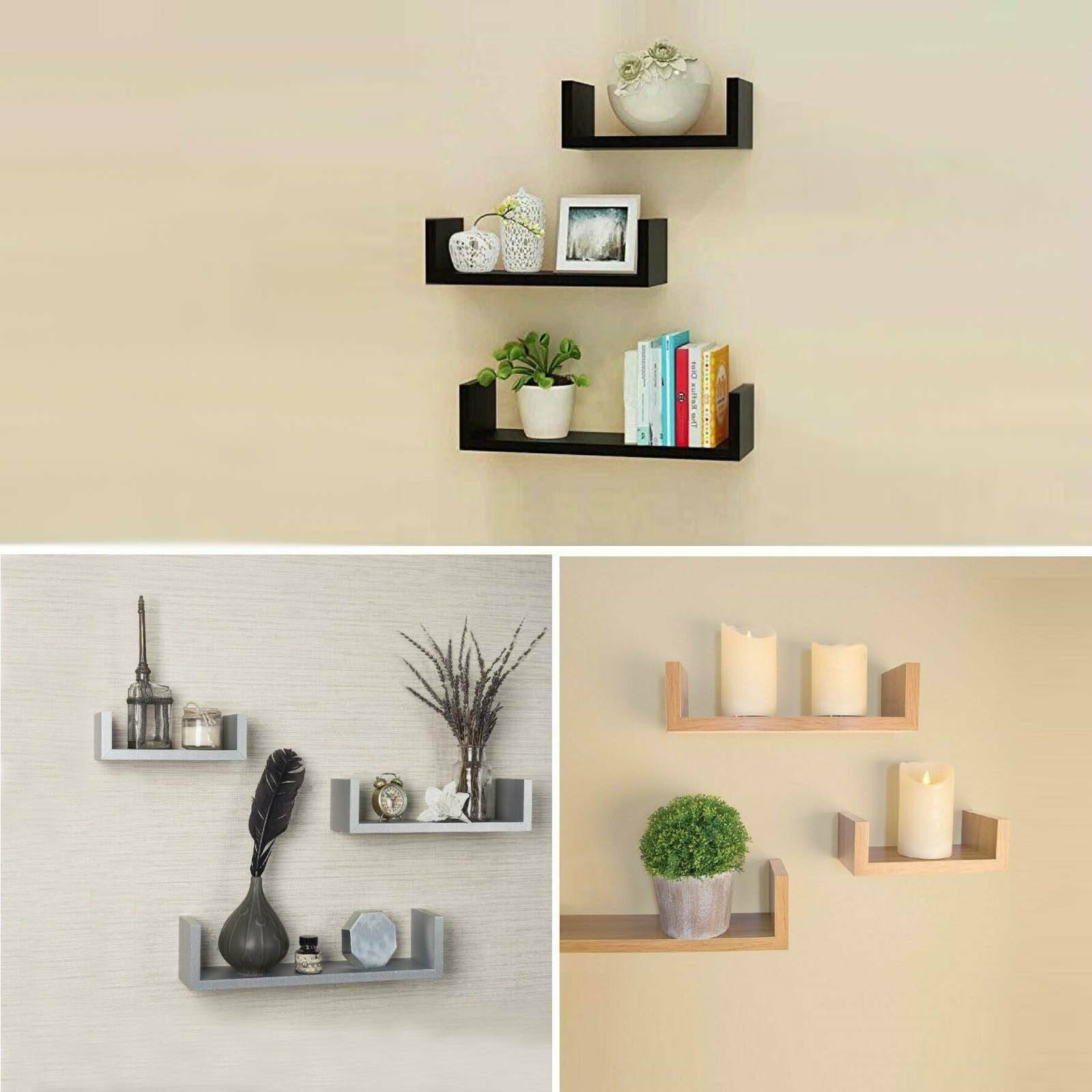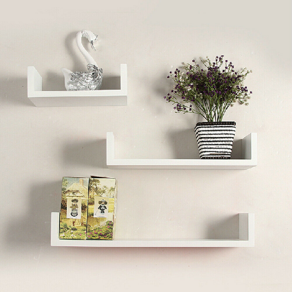 Set of 3 U Shape shelves Floating Wall Shelve Home Decor Storage Wood Shelf Unit