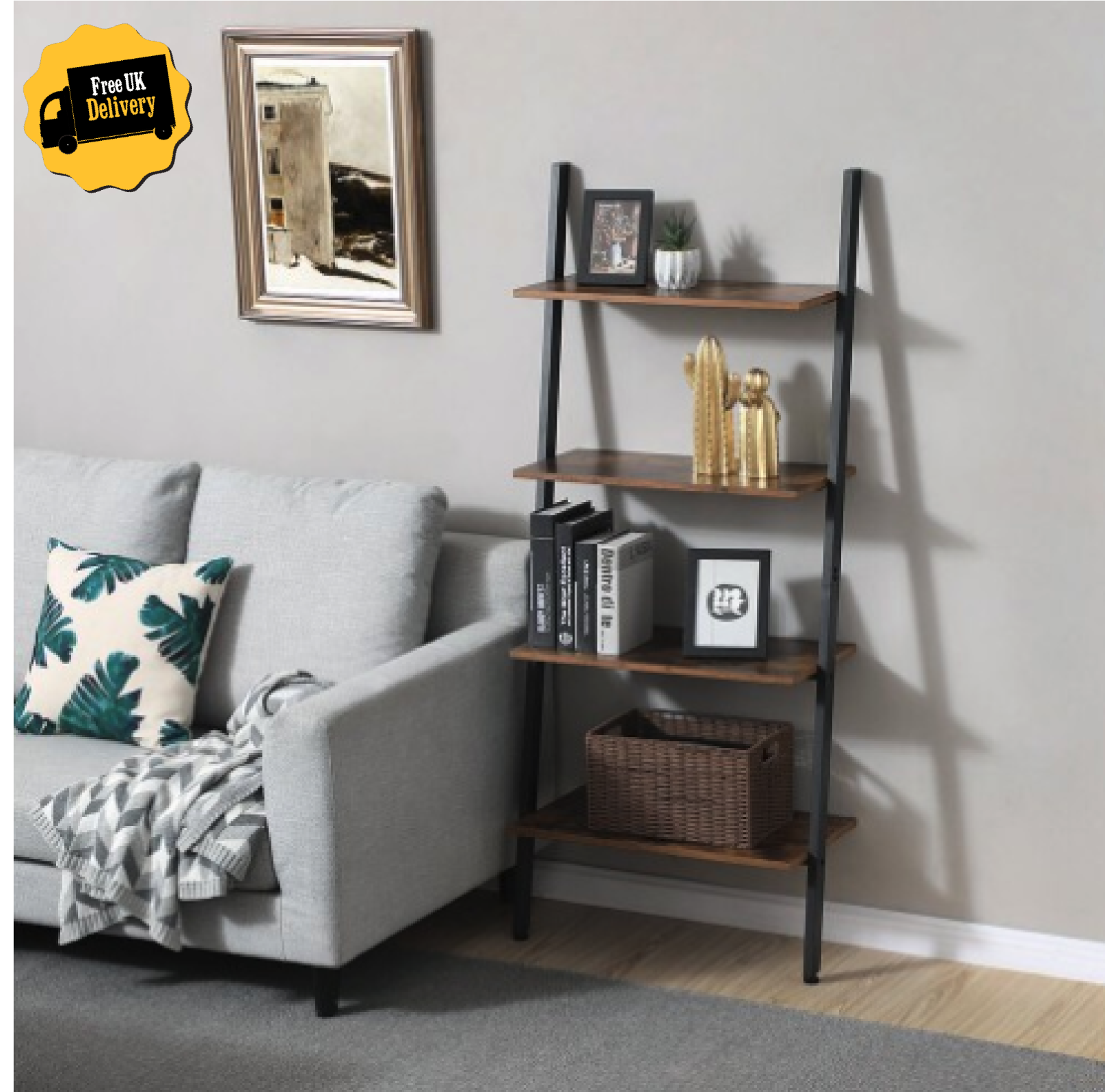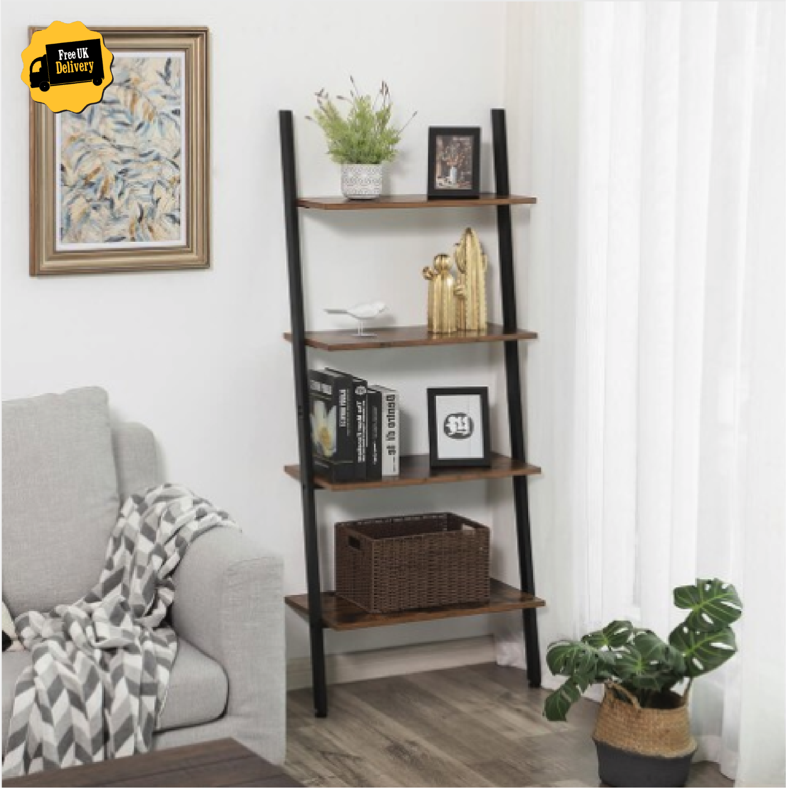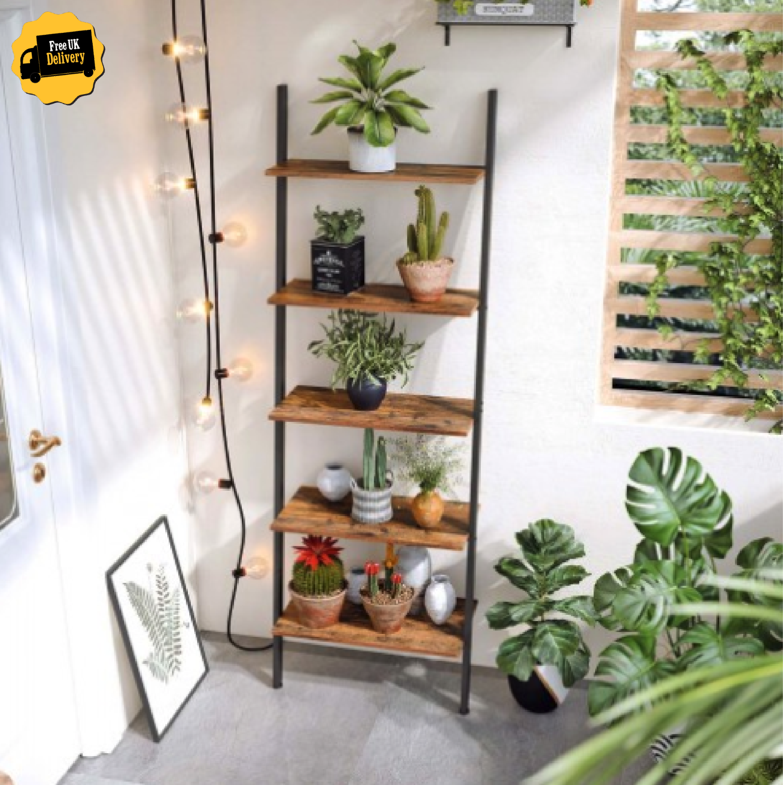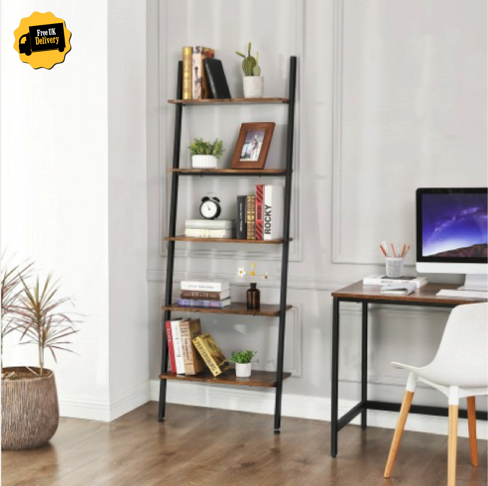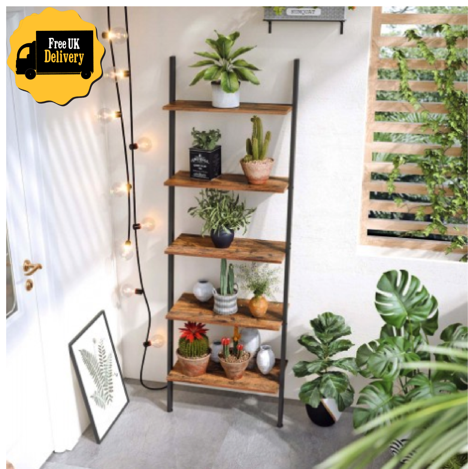 Vintage Ladder Bookcase Industrial Wall Furniture Rustic Metal Display Shelf NEW