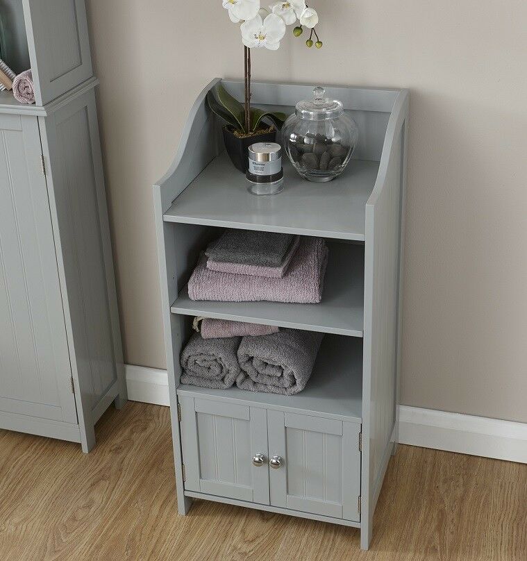 Bathroom Cupboard Storage Unit 2 Door Bath Cupboard 3 Shelf - Grey
