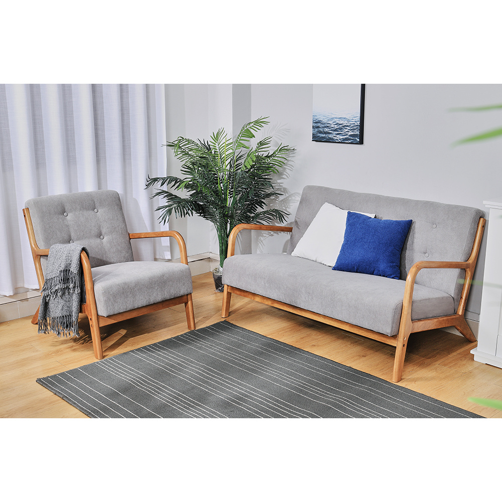 1/2 Seater Sofa Armchair Wooden Frame w/ Fabric Upholstered Tech Velvet Seat Grey