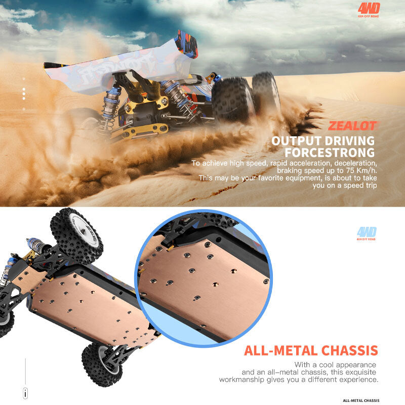 1:12 Remote Control Car, 4WD 75km/H High Speed Racing Car WLtoys 124007