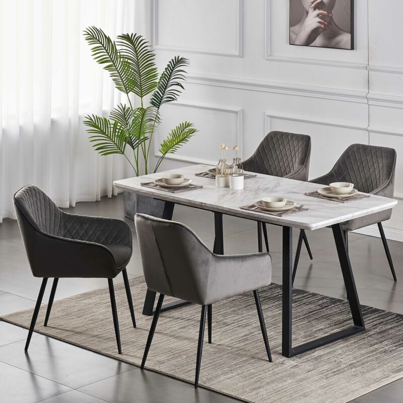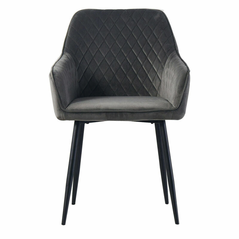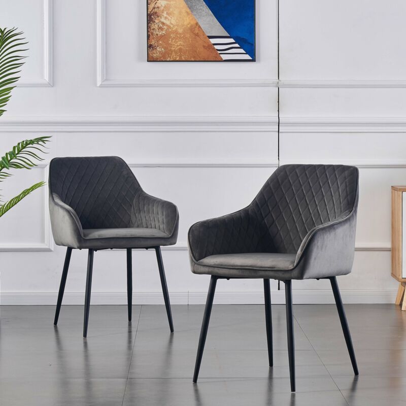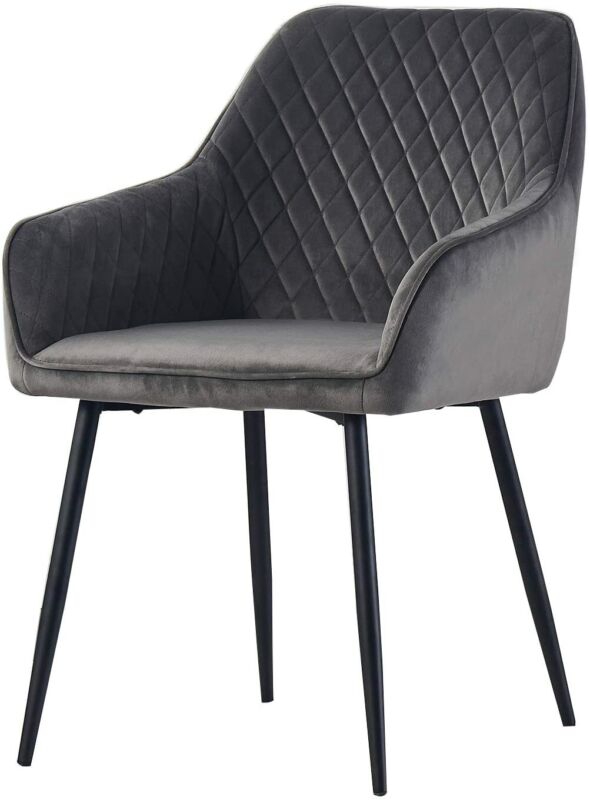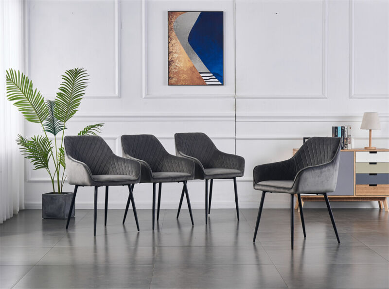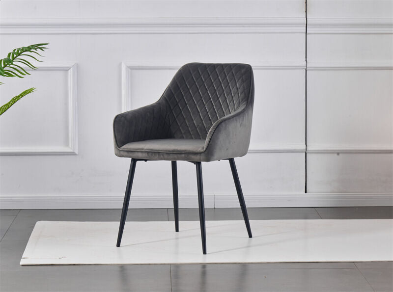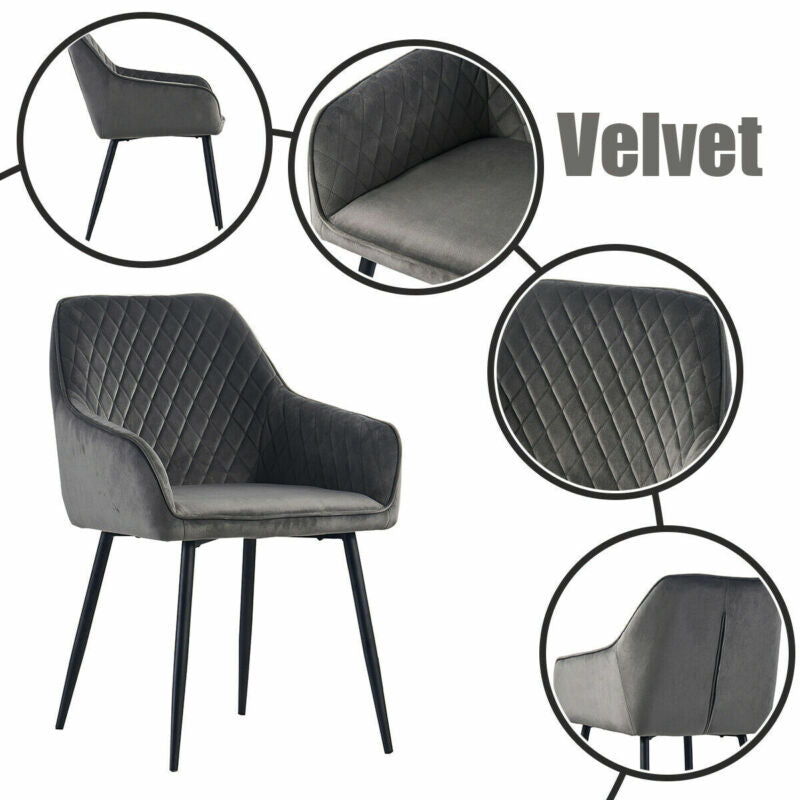 1/2/3/4X Velvet Dining Armchair Grey Chair Padded Seat Metal Legs Office Kitchen