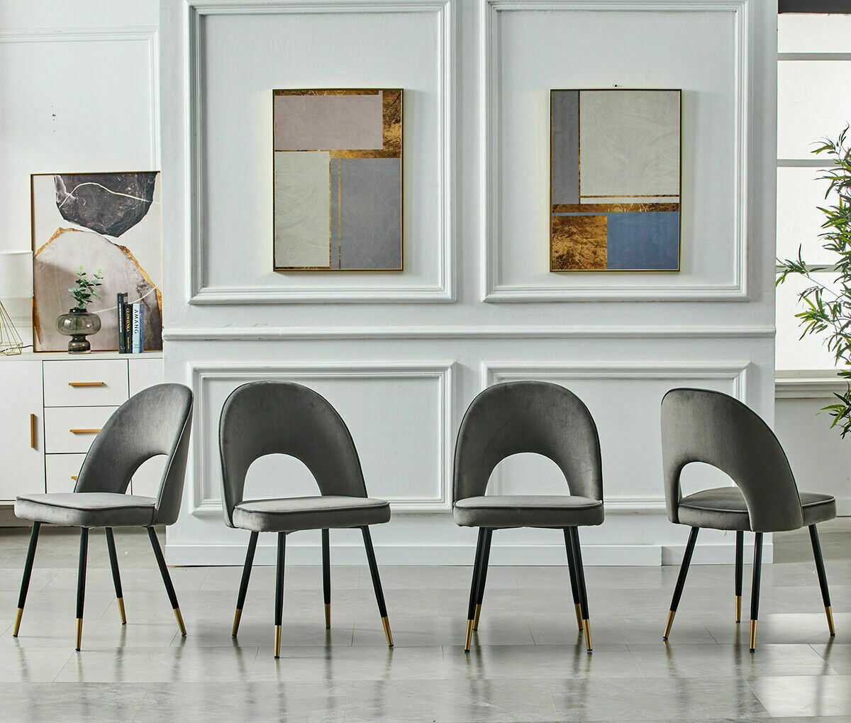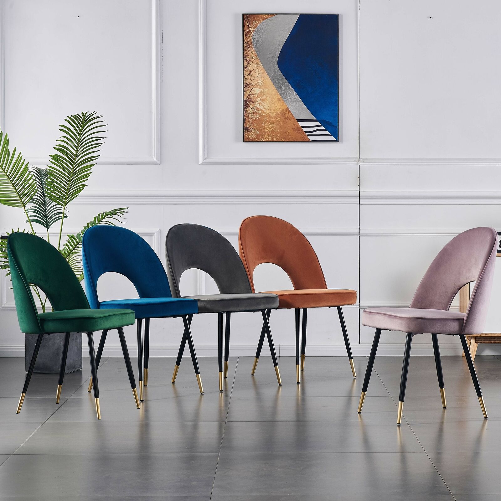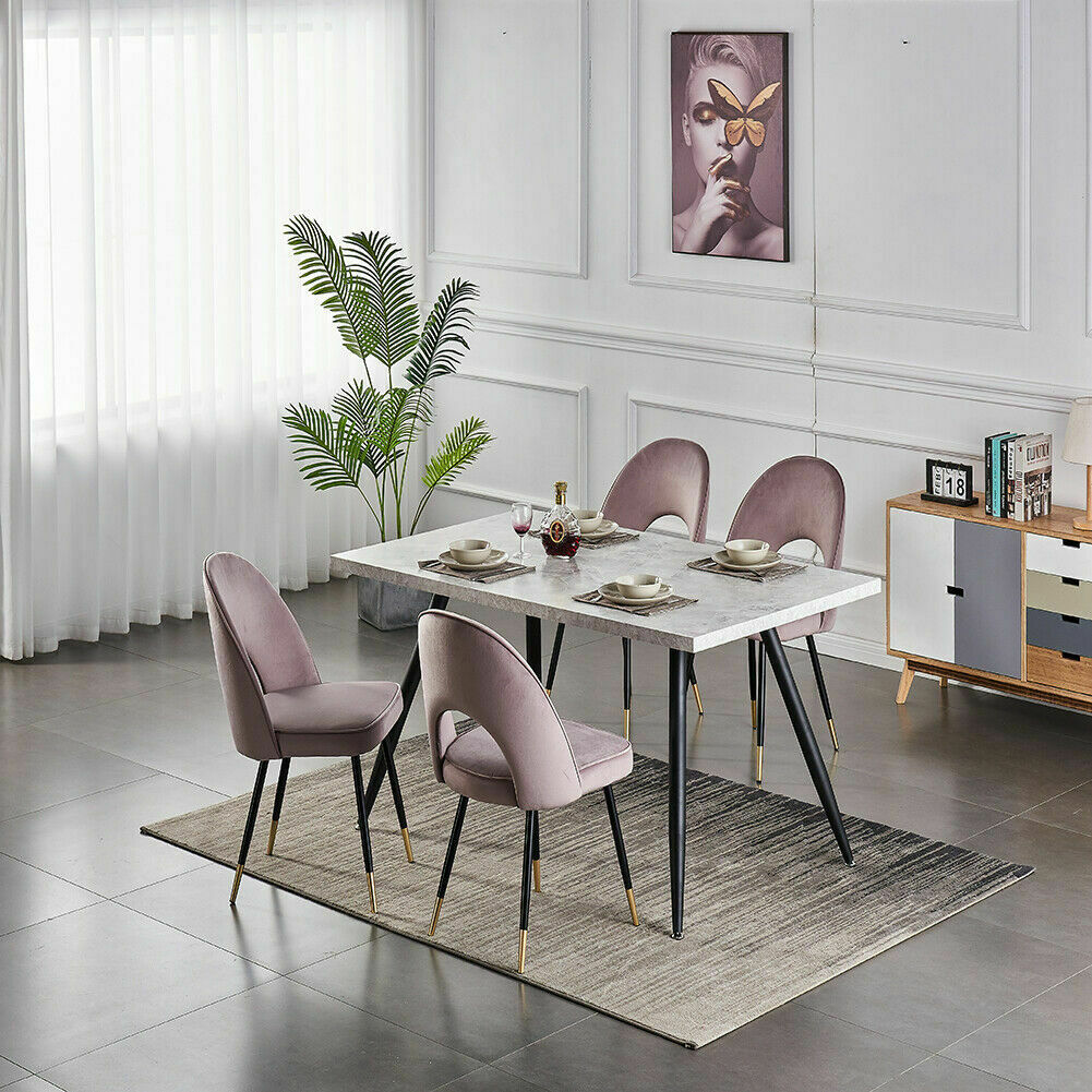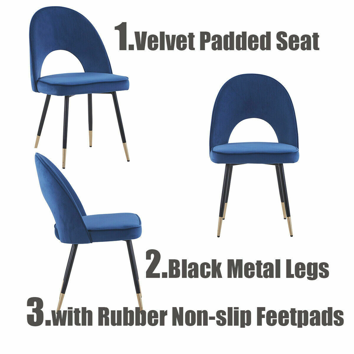 - 1/2/4/6 Velvet Dining Chairs Set Padded Seat Metal Leg Kitchen Home Office Chair