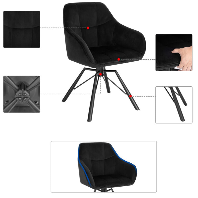 1/2/4/6x Velvet Padded Dining Chair w/ Backrest Lounge Kitchen Swivel Armchair