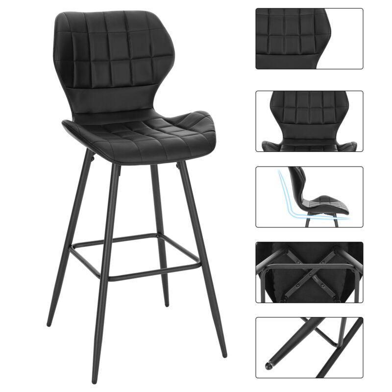 1/2x Bar Stool Kitchen High Chair w/ Backrest Footrest Padded Barstool Cafe Pub