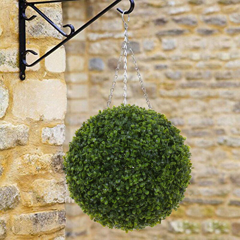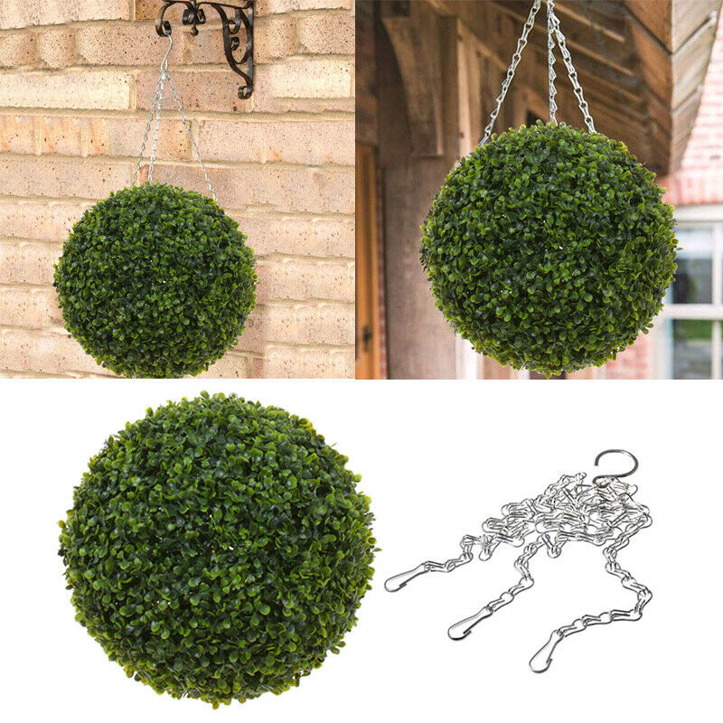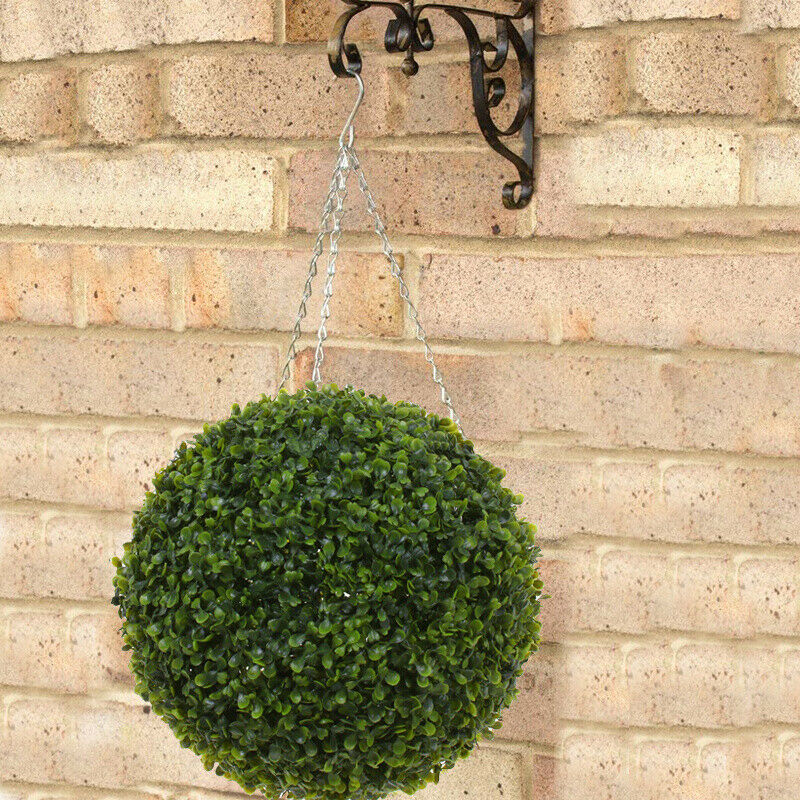 1/2x Gardman Artificial Decorative Hanging Topiary Ball Green Leaf Effect+ Chain