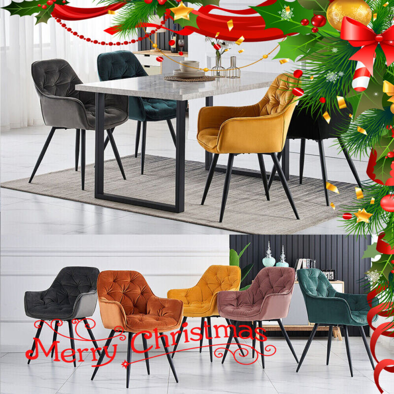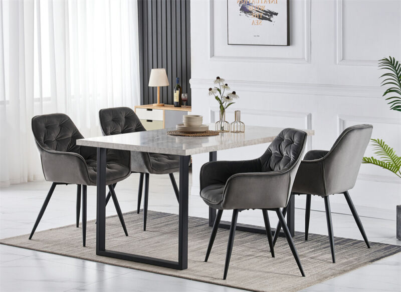 1.5M Dining Table/Velvet Dining Chairs Set Metal Legs Dining Room Kitchen Office