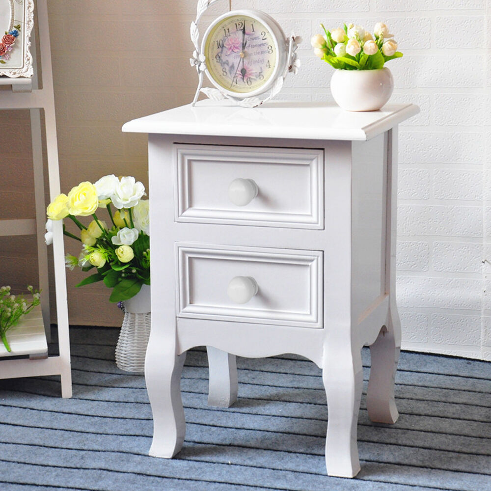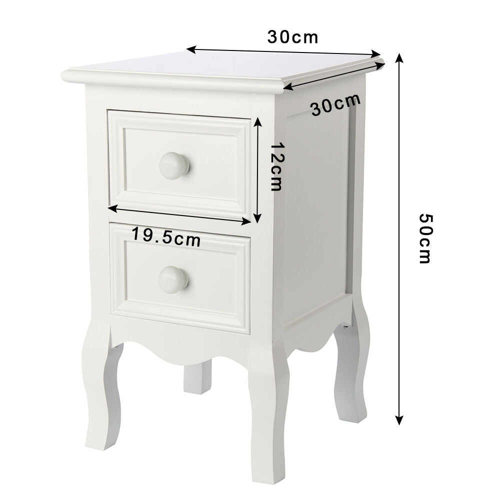 1 Pair White Bedside Tables Unit Nightstand Cabinet with Drawers Bedroom Storage