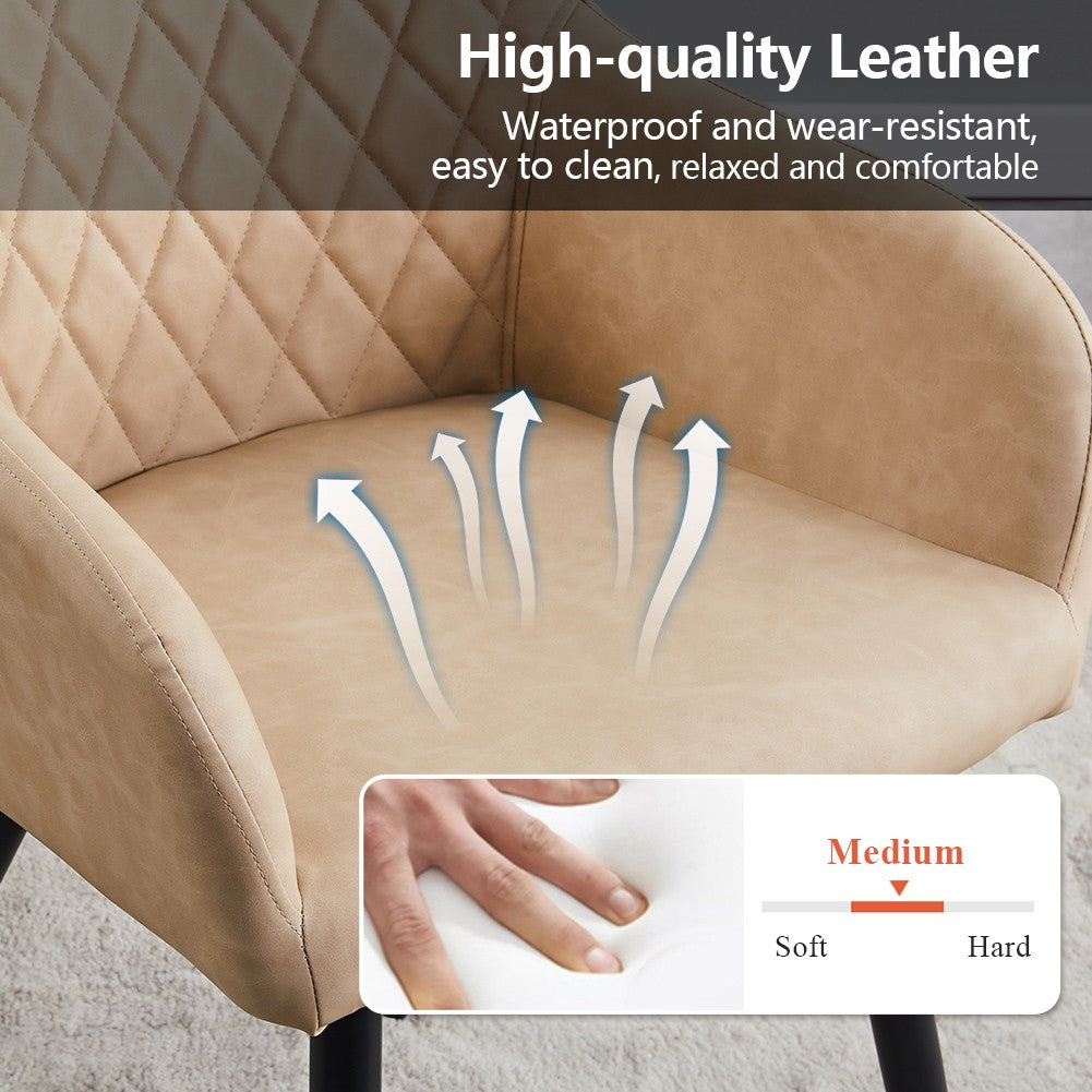 1 PC Faux Leather Dining Chair Metal Legs Kitchen Room Chair Beige Modern