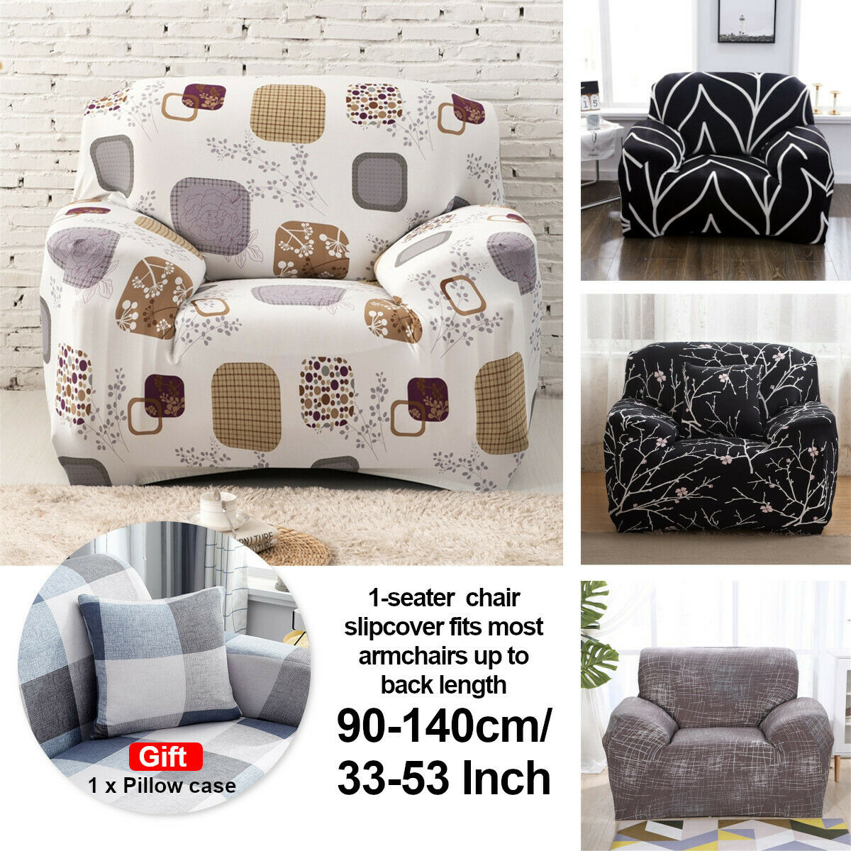 1 Seater Stretch Sofa Cover Arm Chair Couch Slipcover Covers W/ Pillow Case
