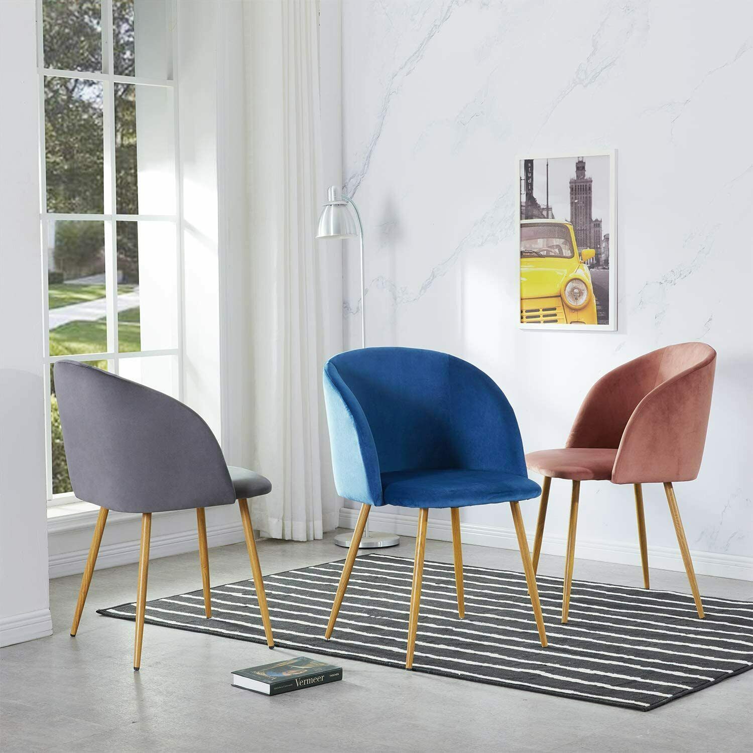 1 x Modern Velvet Dining Chair Make-up Chair Kitchen Office Lounge Armchair Blue