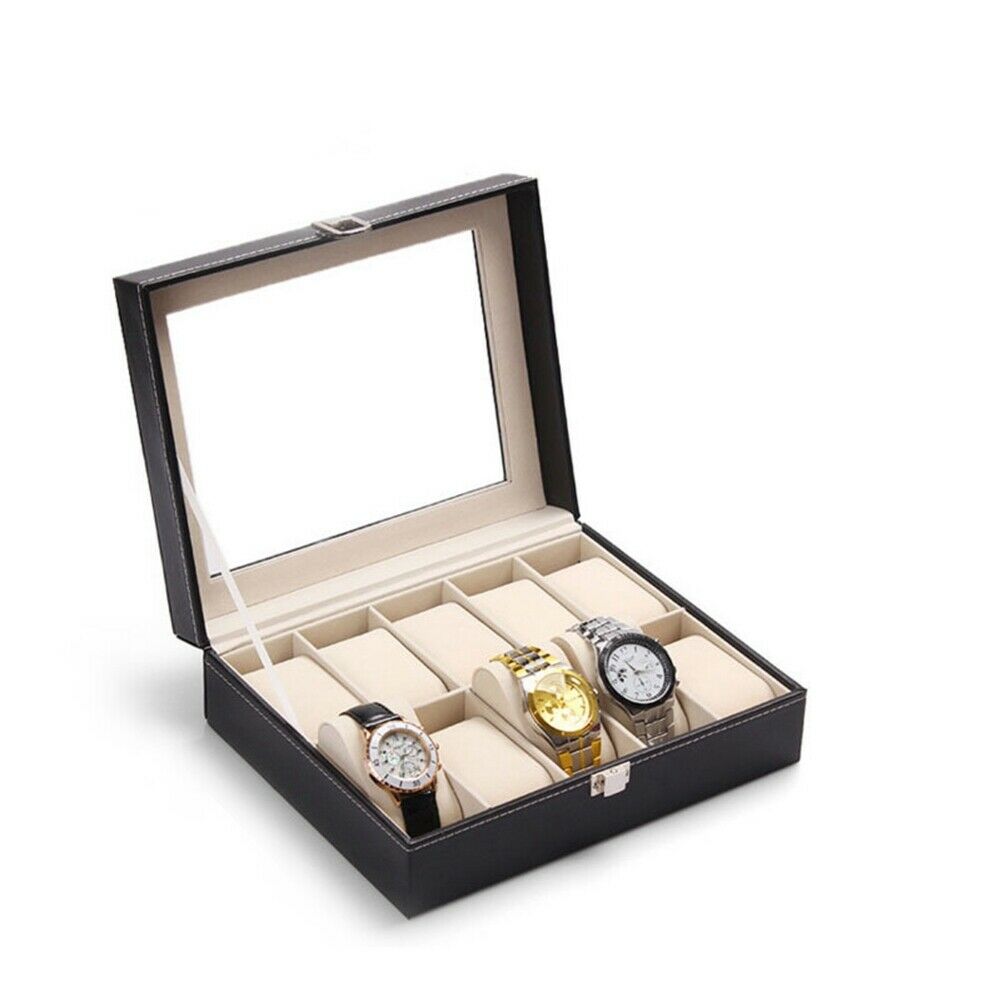 10 Grid Solts Watch Storage Box Display Case Holder Jewelry Collection Organizer