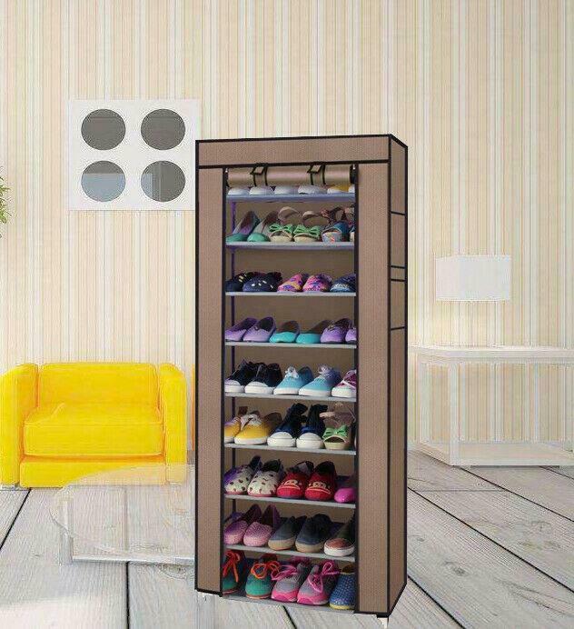 10 Layer Shoes Rack Storage Home Organiser Dustproof Shoe Cabinet Stand Brown
