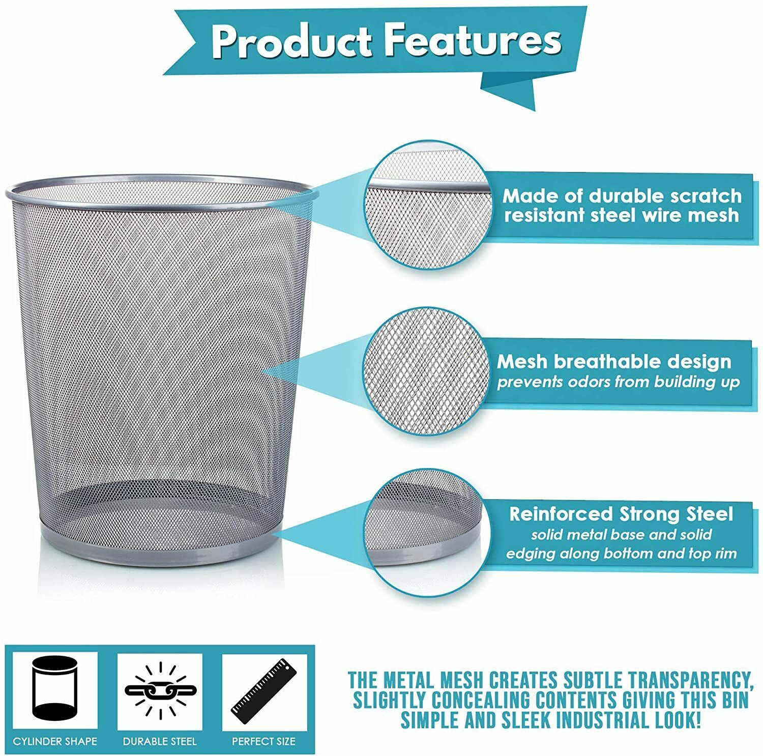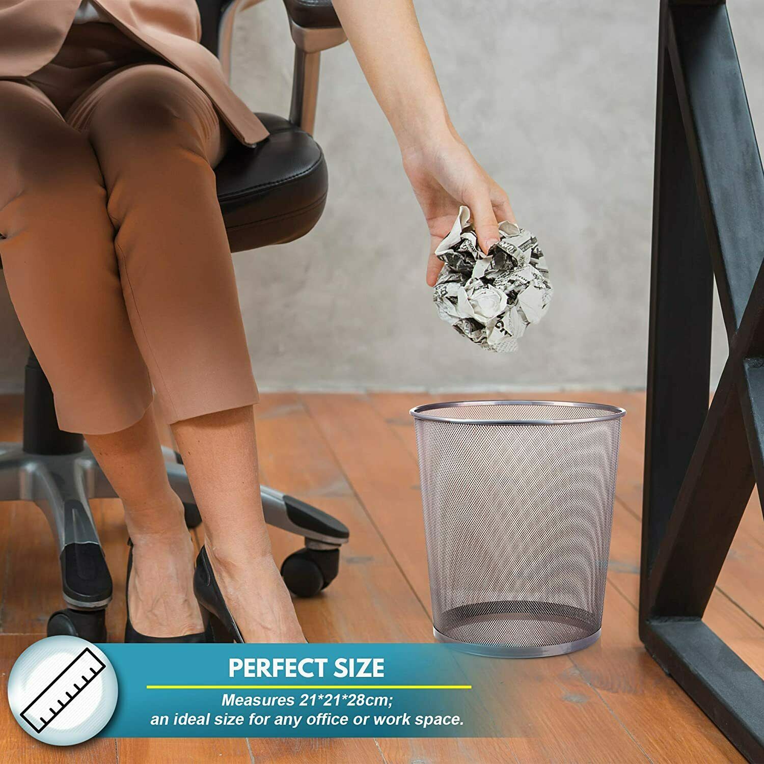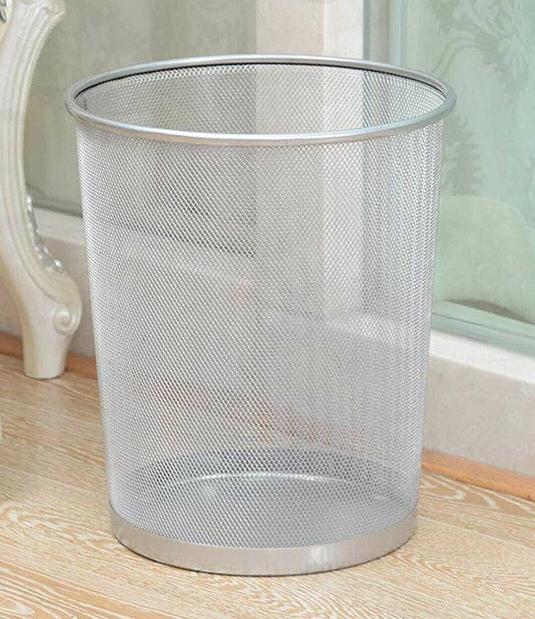 10'' Metal Mesh Silver Wire Bin Rubbish Paper Waste Home Office Bedroom Sturdy