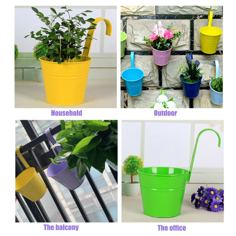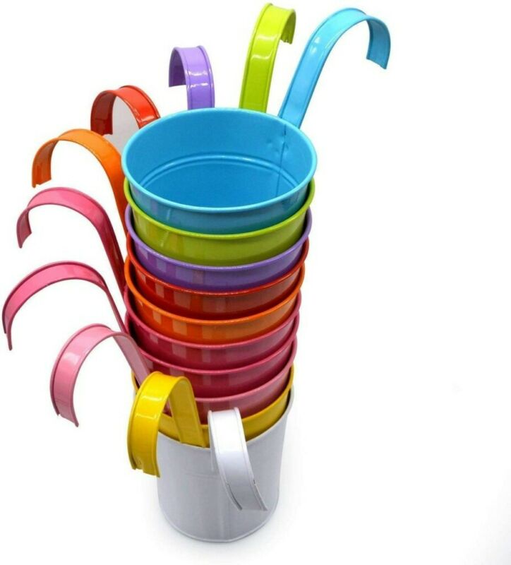 10 Pack Hanging Flower Pot Balcony Deck Wall Fence Plant Planting Barrel Planter