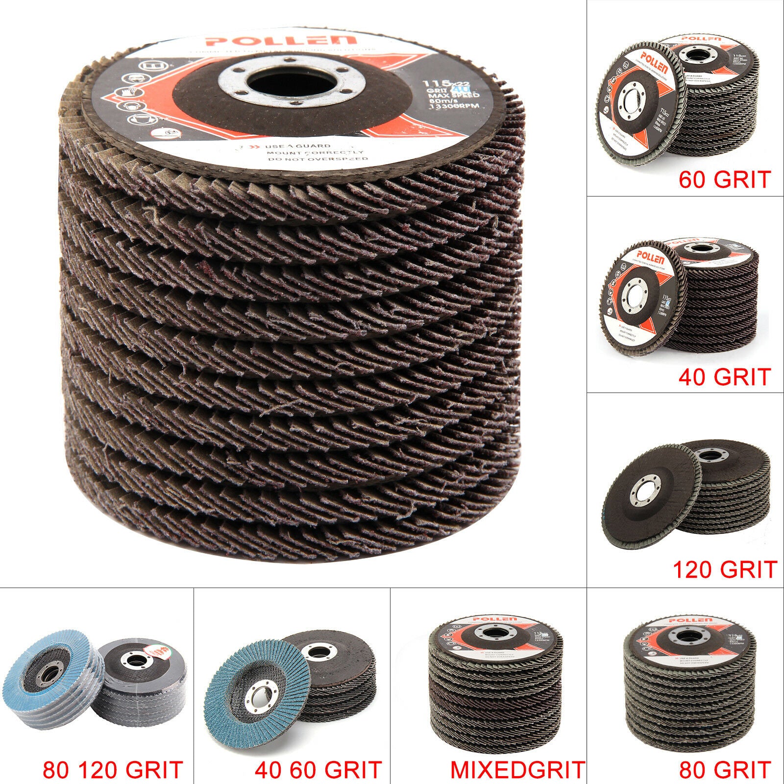 10 Pcs Professional Flap Sanding Discs 115mm 4.5" 40 60 80 120 Grit Angle Zircon