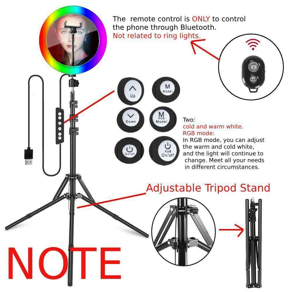 10" RGB LED Ring Light with 2M Tripod Dimmable Lighting Kit Makeup Cyber Monday