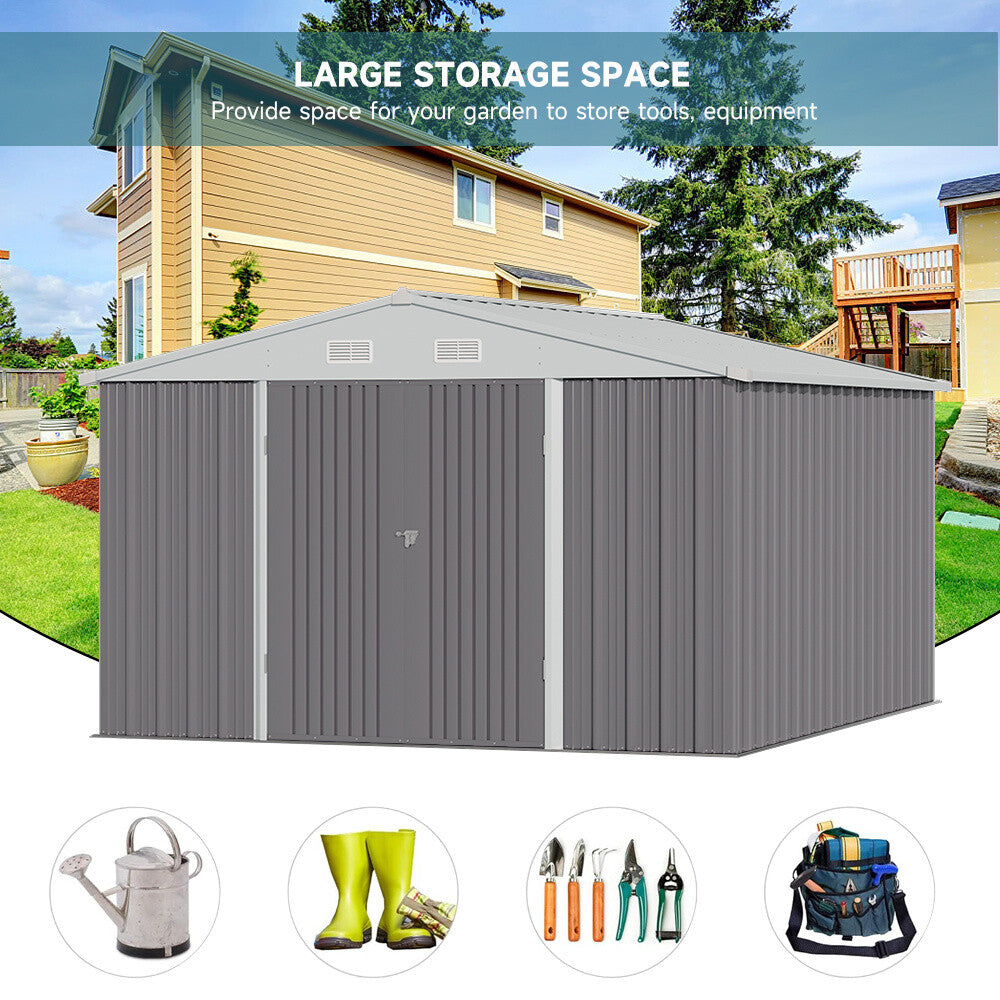 10 x 12 FT Galvanised Metal Steel Sheds Multi-Purpose Storage Shed with Door S