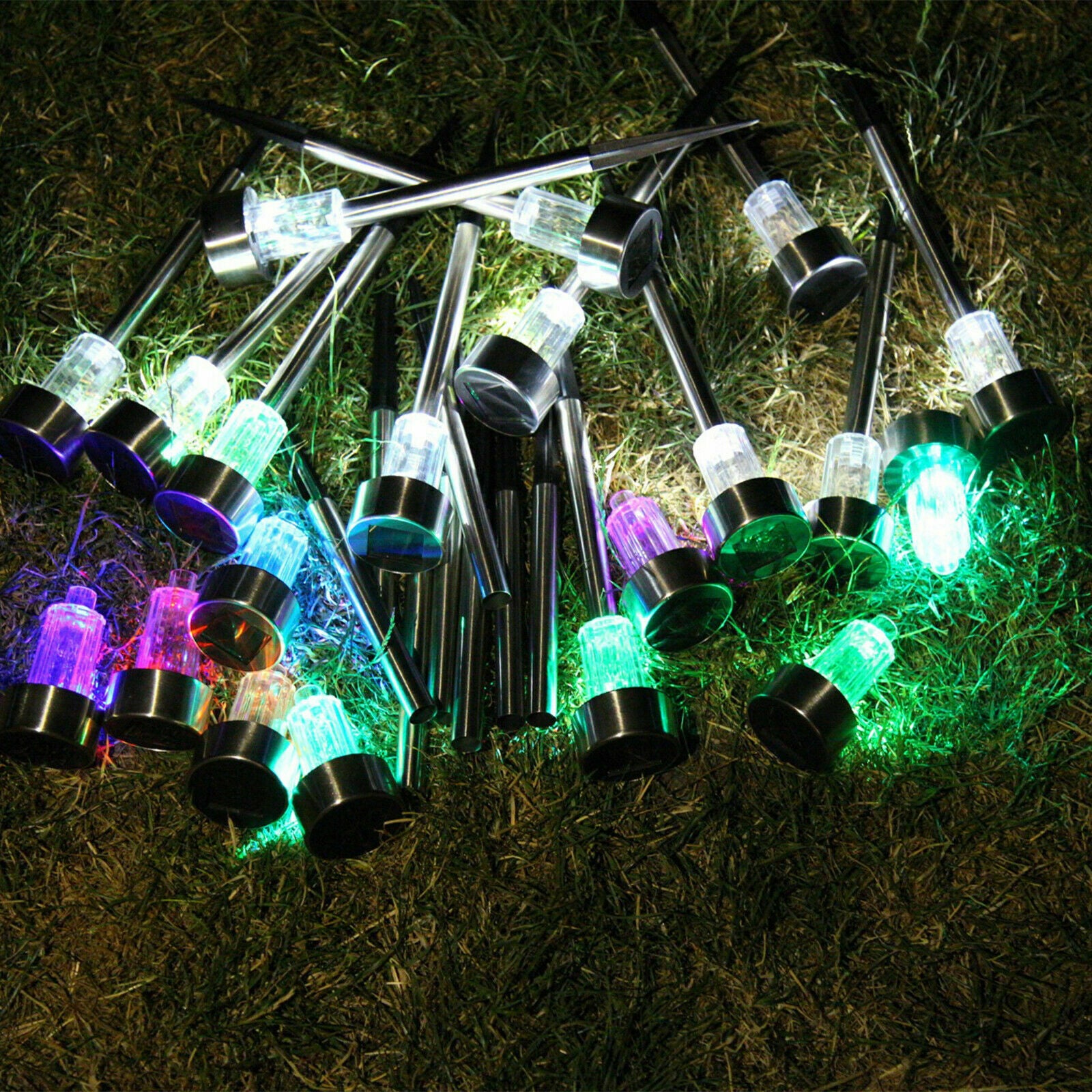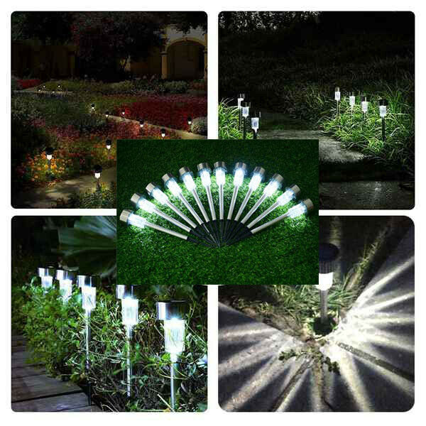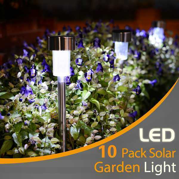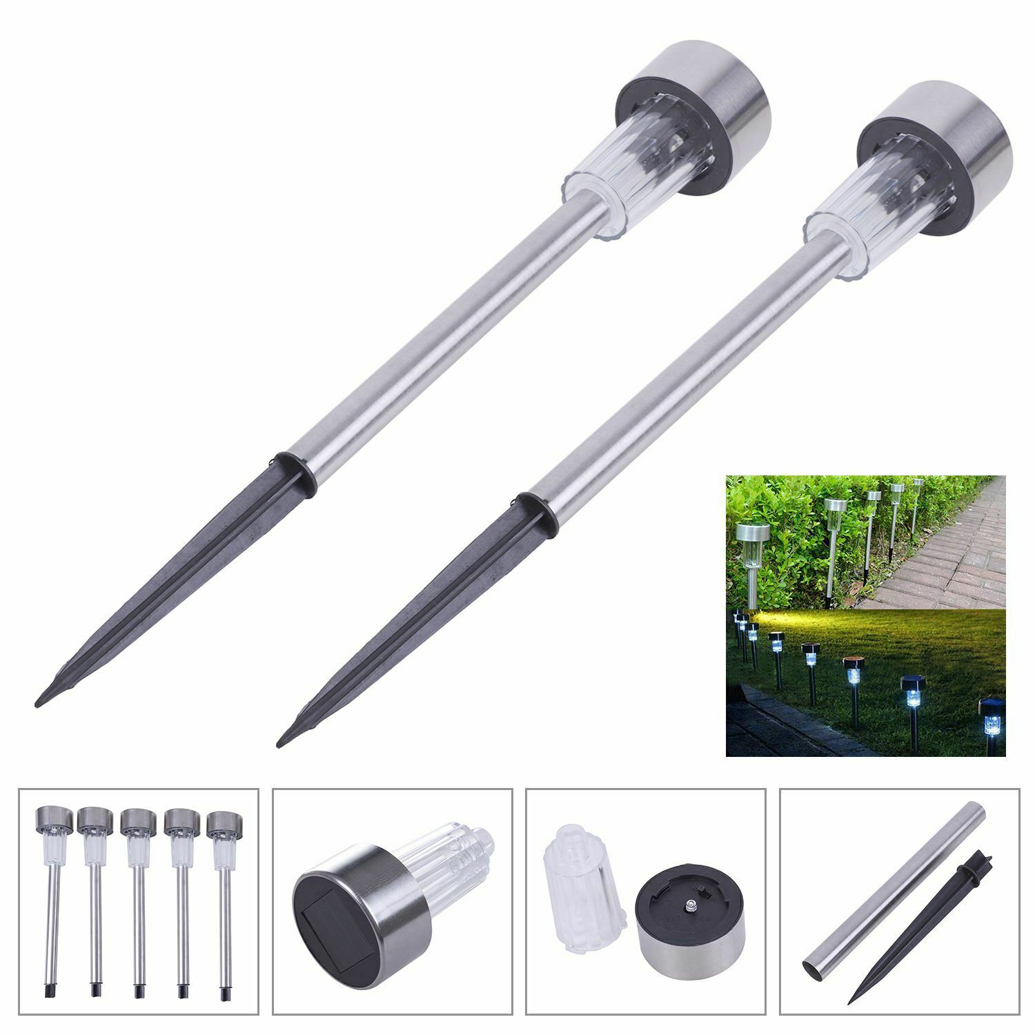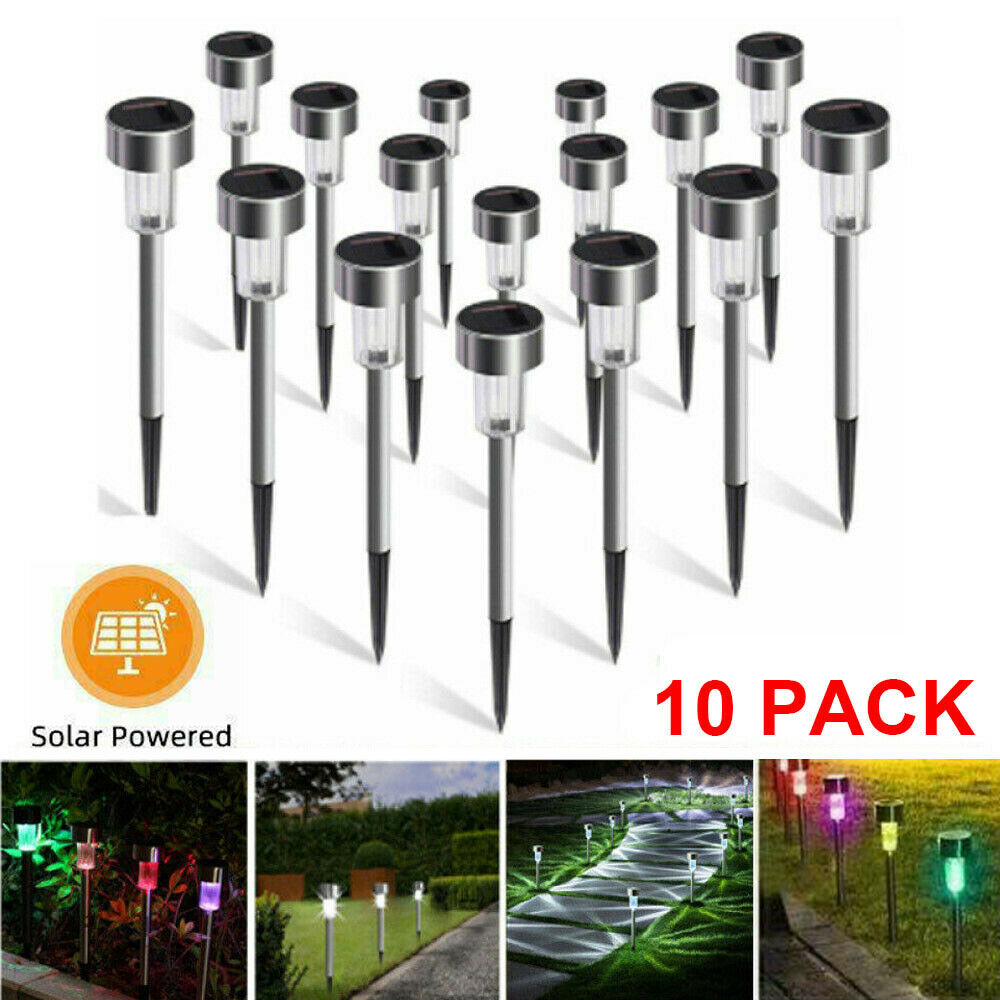 10 x Solar Powered Stainless Steel Led Post Stake Lights Garden Patio Outdoor UK