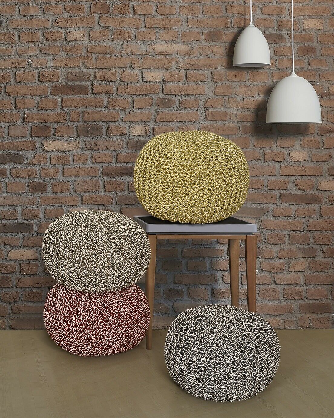 100% Cotton Two-Tone Double Knitted Braided Pouffe Stool Cushion, In 5 Colours