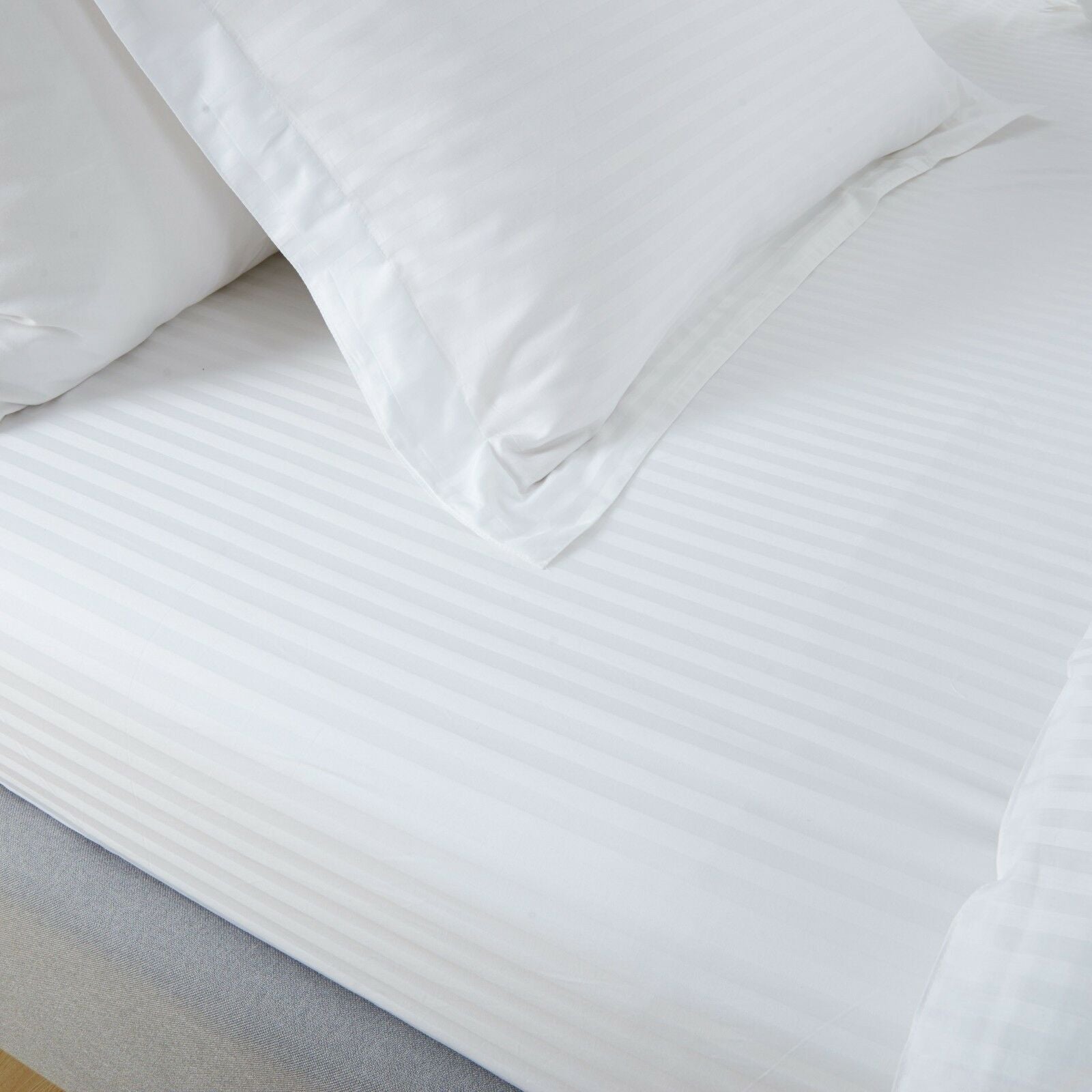 100% EGYPTIAN COTTON SATEEN 300TC WHITE SATIN STRIPE FITTED SHEET HOTEL QUALITY