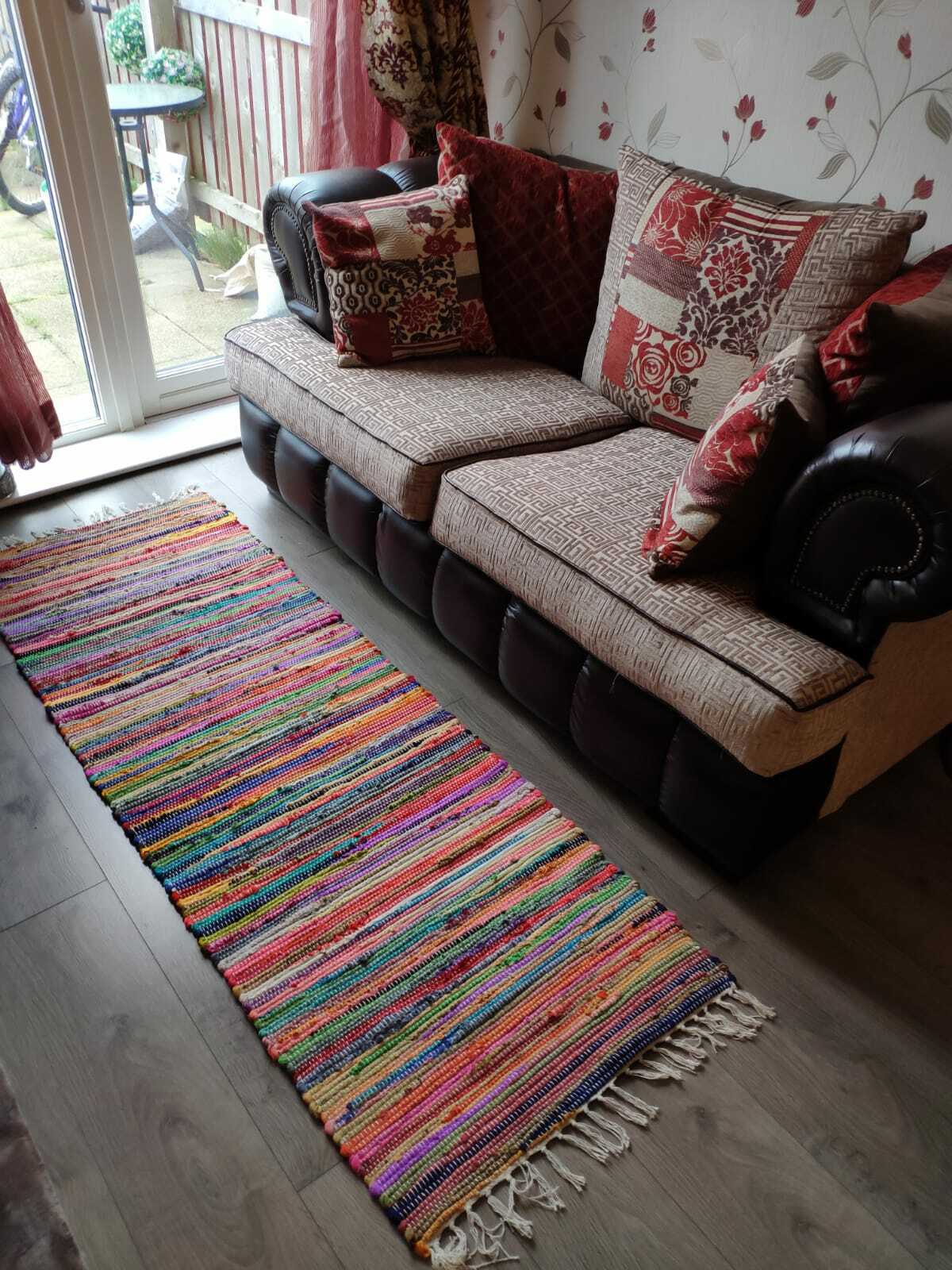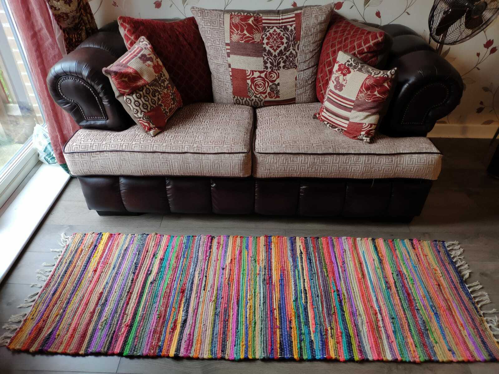 100% Recycled Cotton Handmade Rug Mat Multi Coloured Chindi Floor Rag Rug Runner