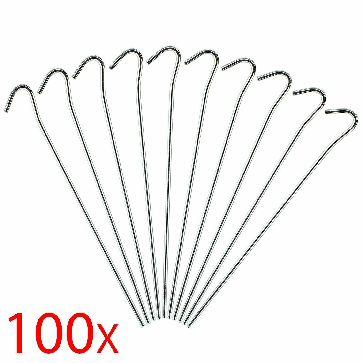 100 x Heavy Duty Galvanised Steel Tent Pegs Metal Camping Ground Sheet Anchor
