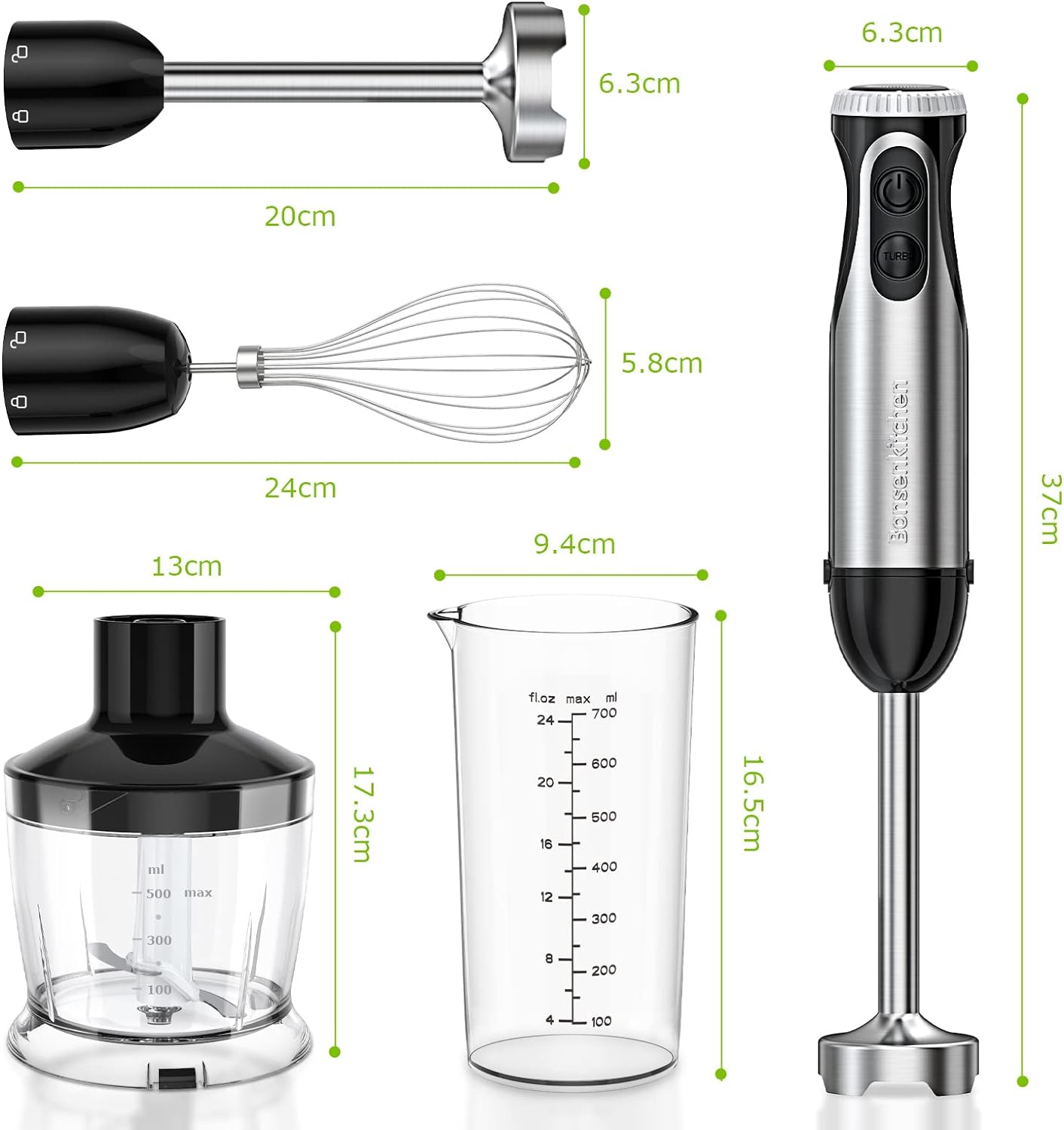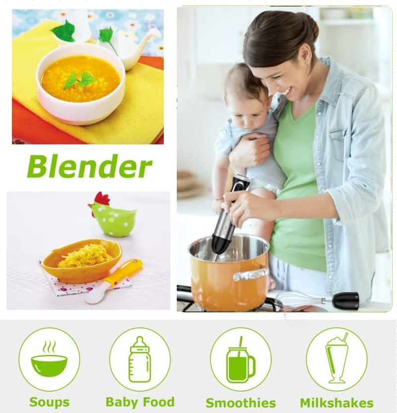 1000W 4-in-1 Electric Hand Blender Set with Whisk, Chopper, 20-Speed & Cup
