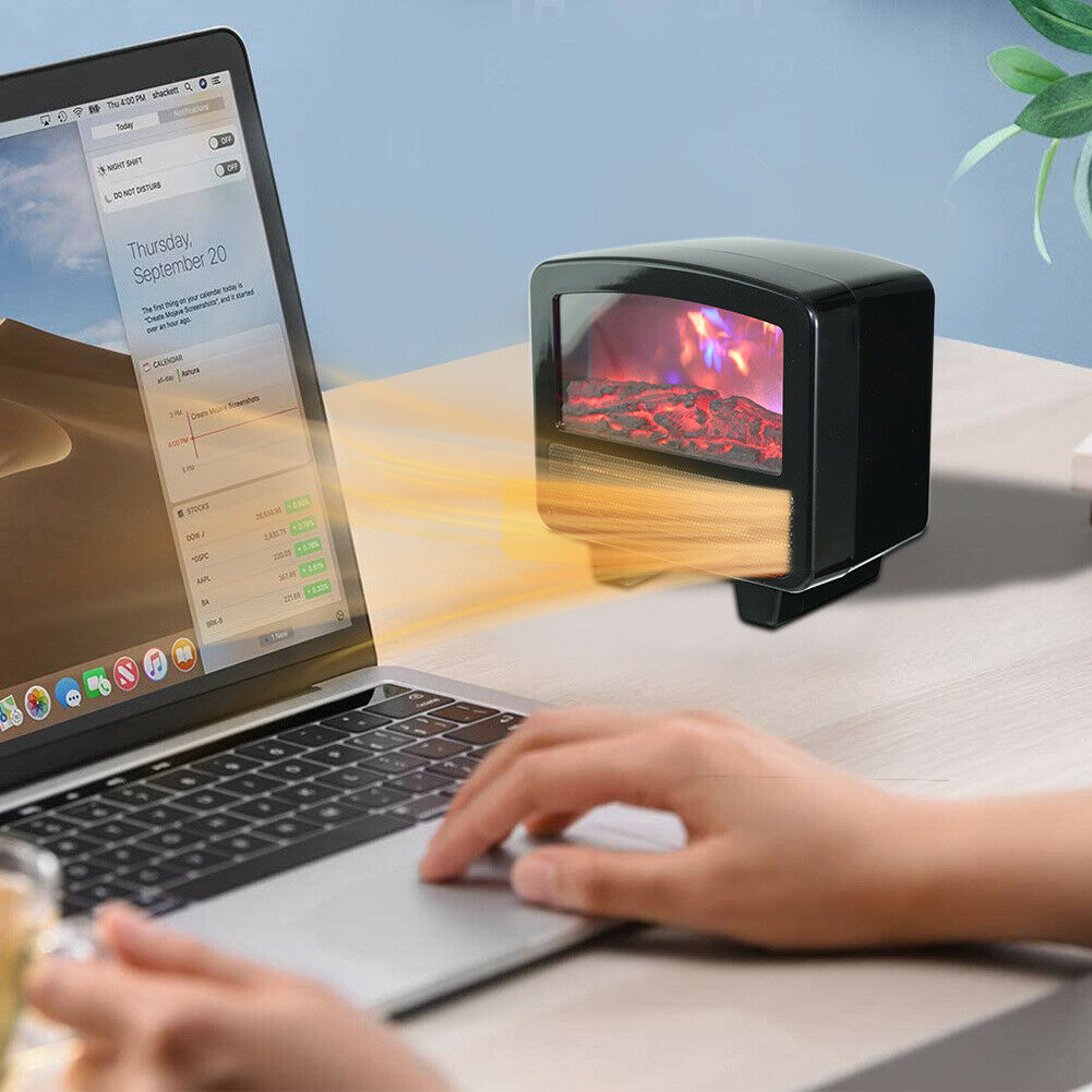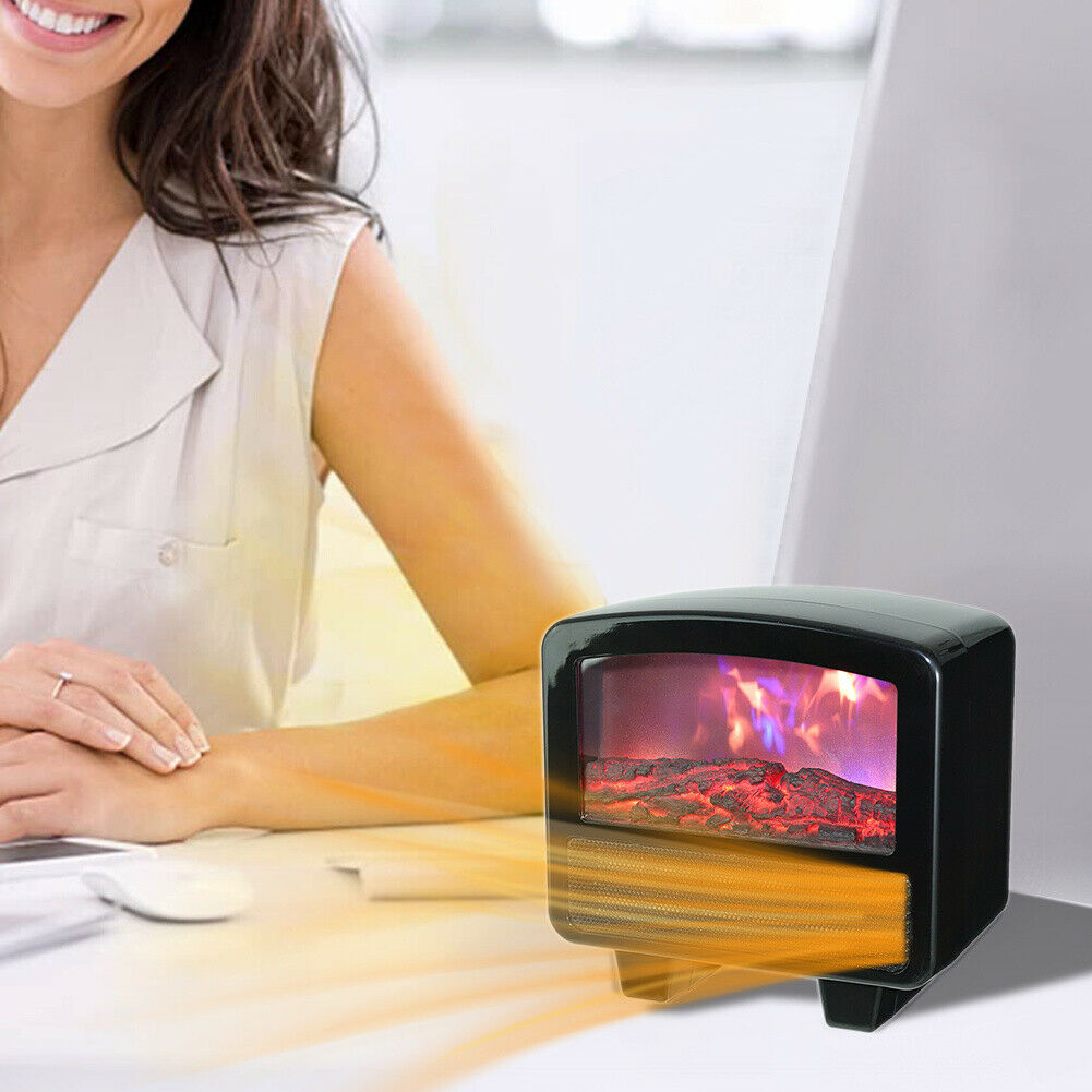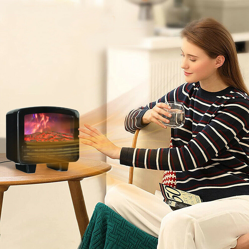 1000W Portable Electric Heater Fan Mini Fireplace Warmer LED Flame Home Office