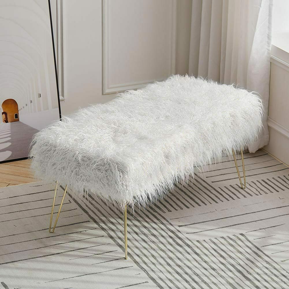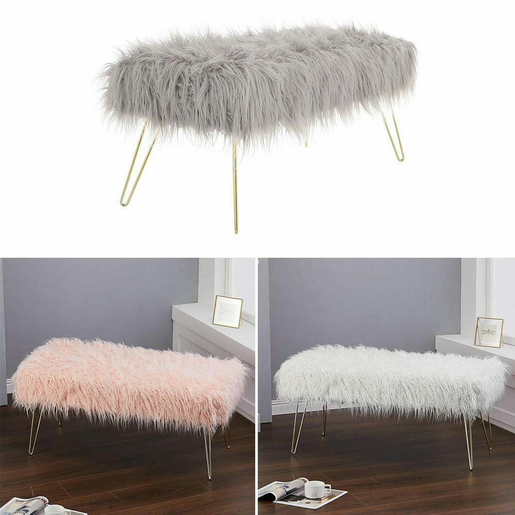 100cm Bench With Hairpin Legs Fluffy Padded Stool Bench Bedroom Hallway Seat