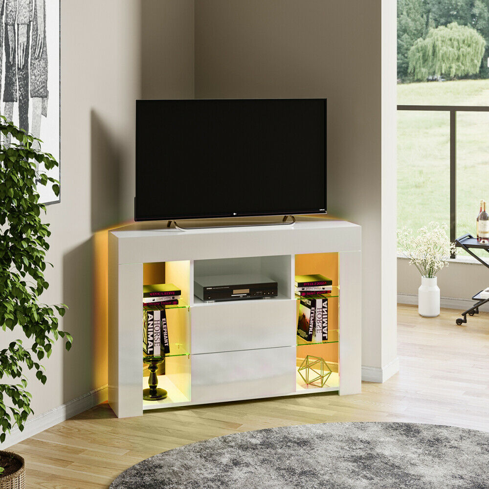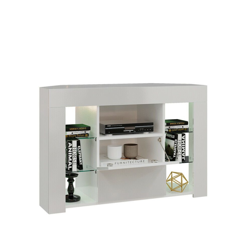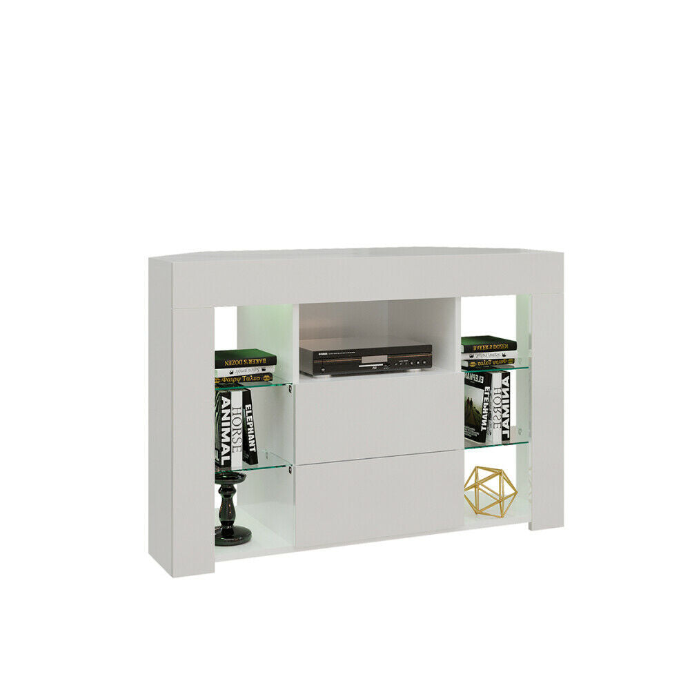 100cm Corner TV Stand Cabinet White High Gloss Door & Matt Body Unit RGB LED