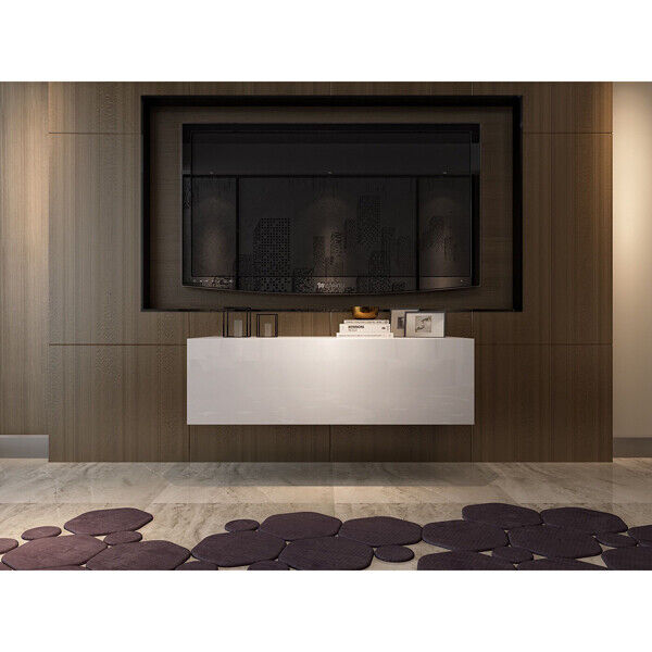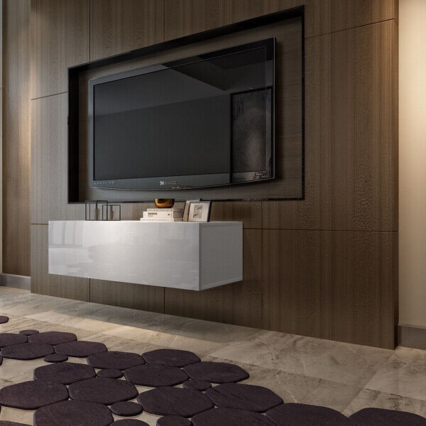 100cm High Gloss TV Cabinet Wall Mounted Cabinet Floating Cupboard Storage White