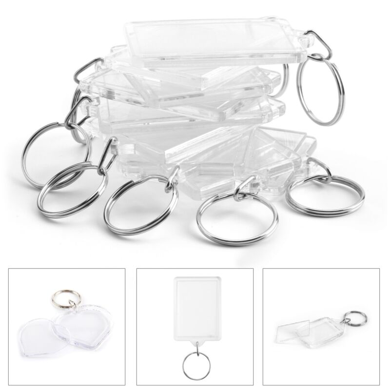100pcs Acrylic Plastic Blank Keyrings Insert Photo Passport Key rings UK