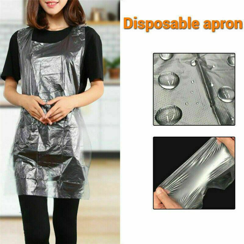 100pcs Disposable Adult Waterproof Plastic Aprons Kitchen Apron Gown Polythene