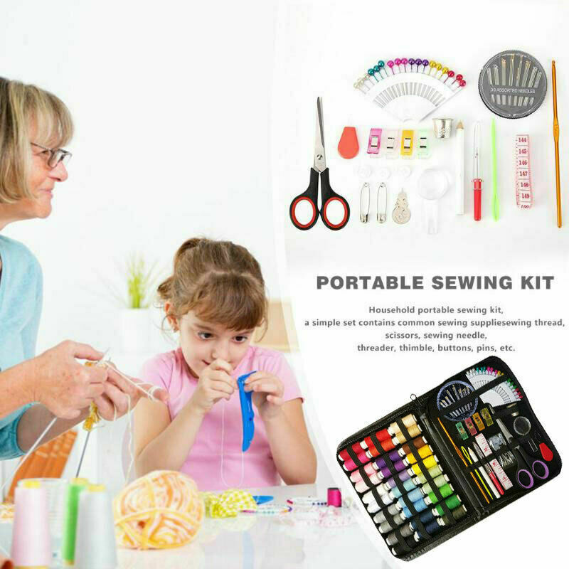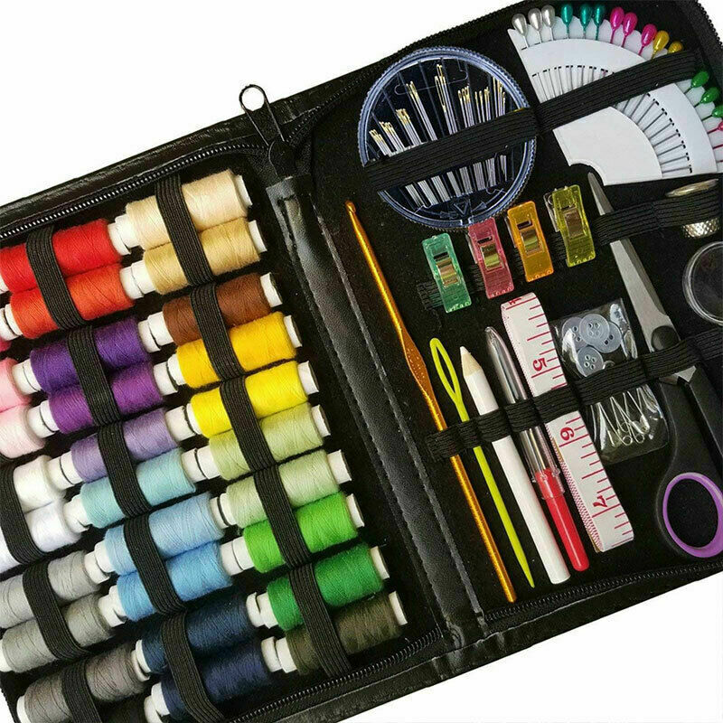 100x Portable Sewing Kit Thread Scissor Tape Pins Thimble Needle Home Travel UK