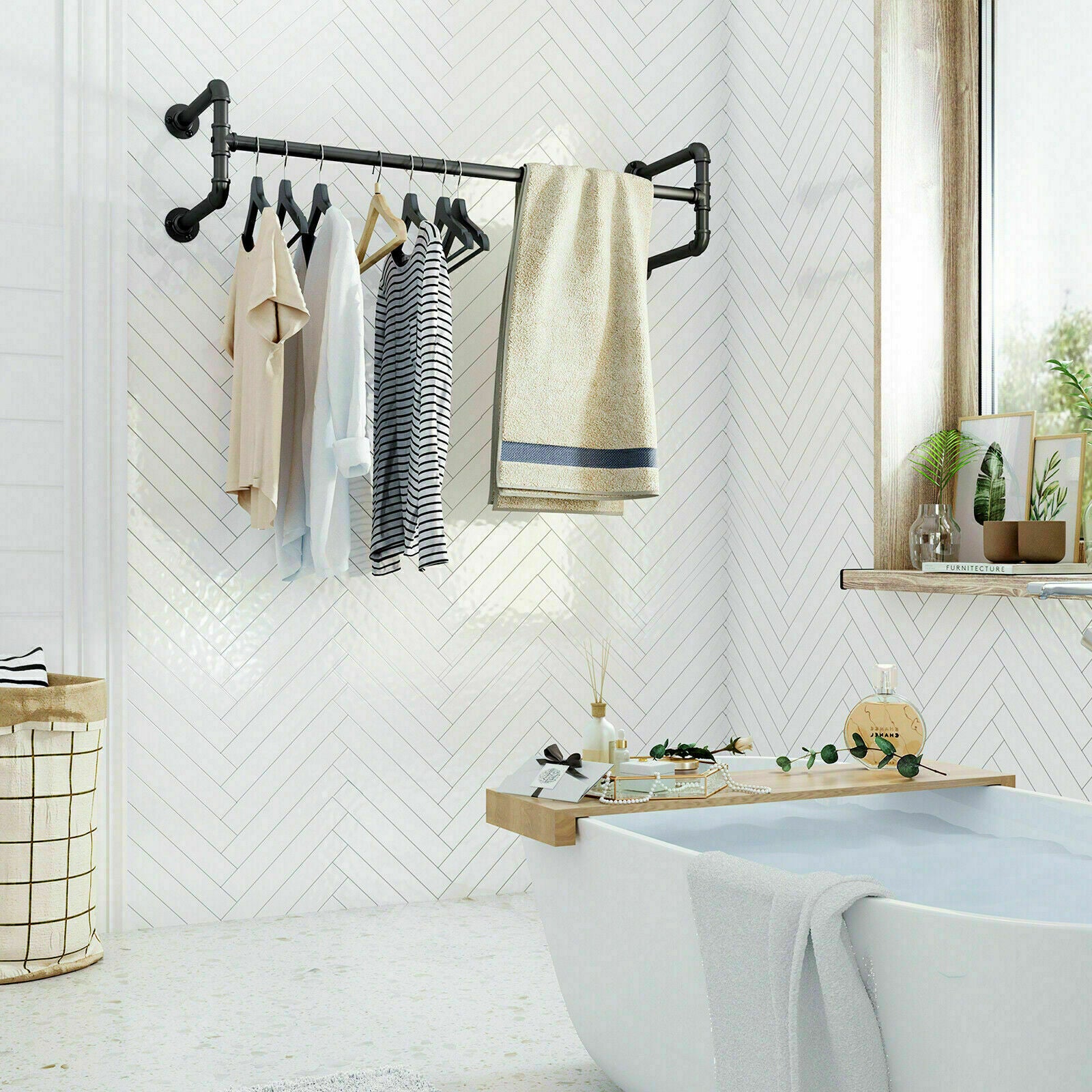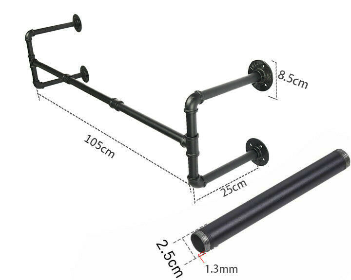 105CM Industrial Pipe Clothes Rail Shelf Clothing Rack Wall Mounted Custom UK MU