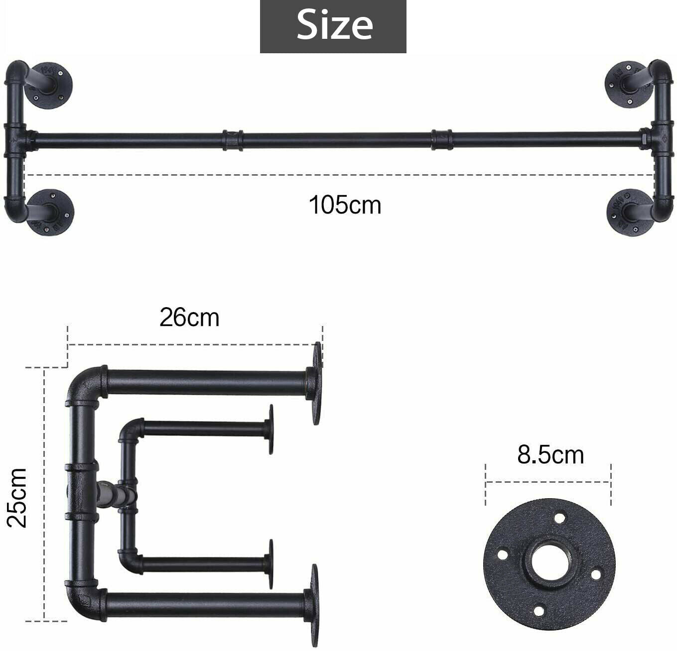 105CM Industrial Pipe Clothing Rack Wall Mounted Clothes Rail Hanging Display HL