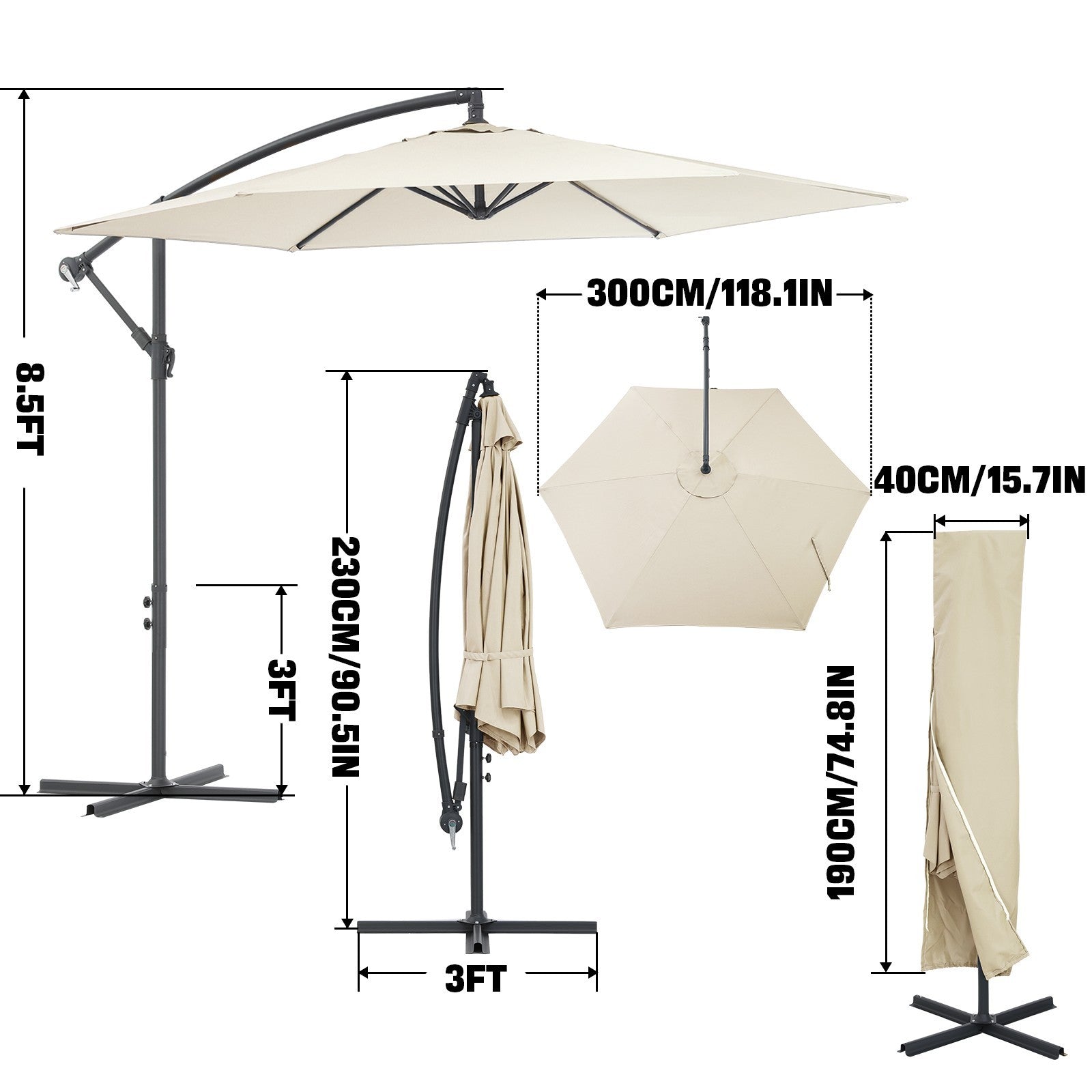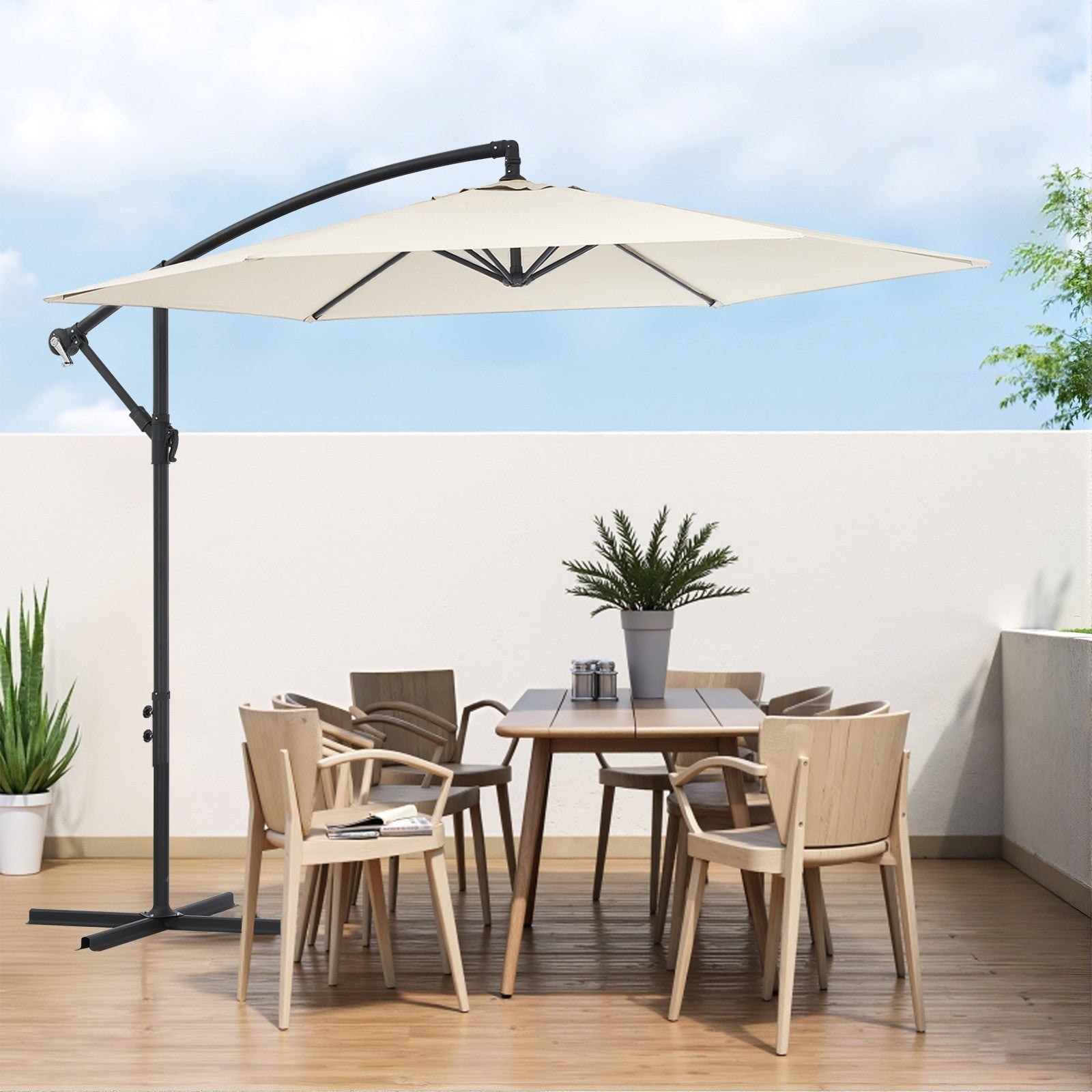 10FT 6 Rib Banana Parasol Sun Shade Patio Hanging Umbrella Cantilever Garden Ypv