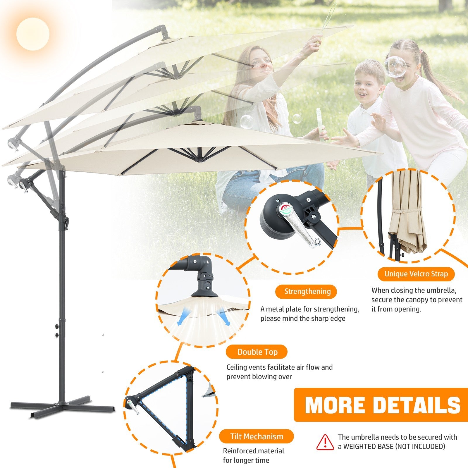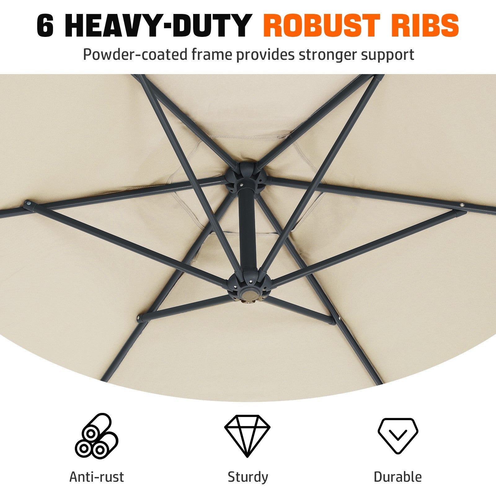 10FT 6 Rib Banana Parasol Sun Shade Patio Hanging Umbrella Cantilever Garden Ypv