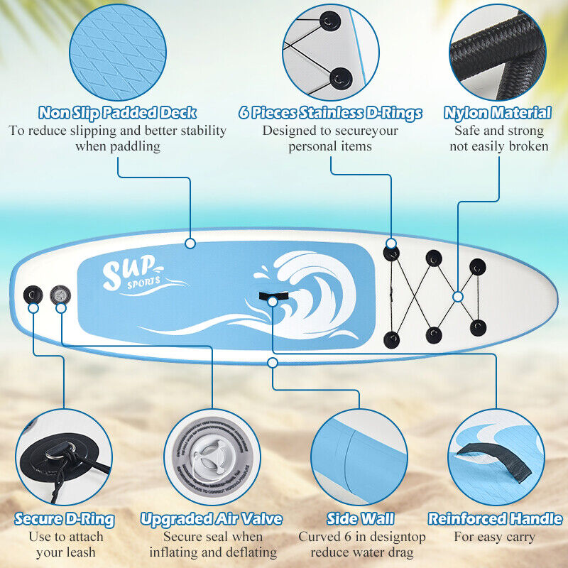 10FT Inflatable Stand up Paddle Board White+Blue Surfboard SUP Board New