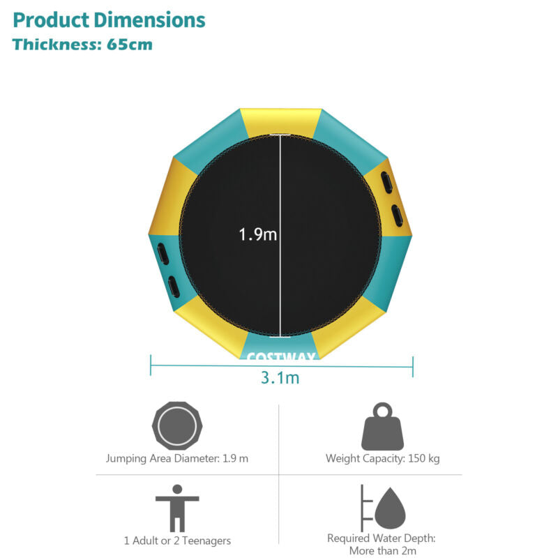 10FT Inflatable Water Bouncer Recreational Trampoline w/ 500W Electric Inflator