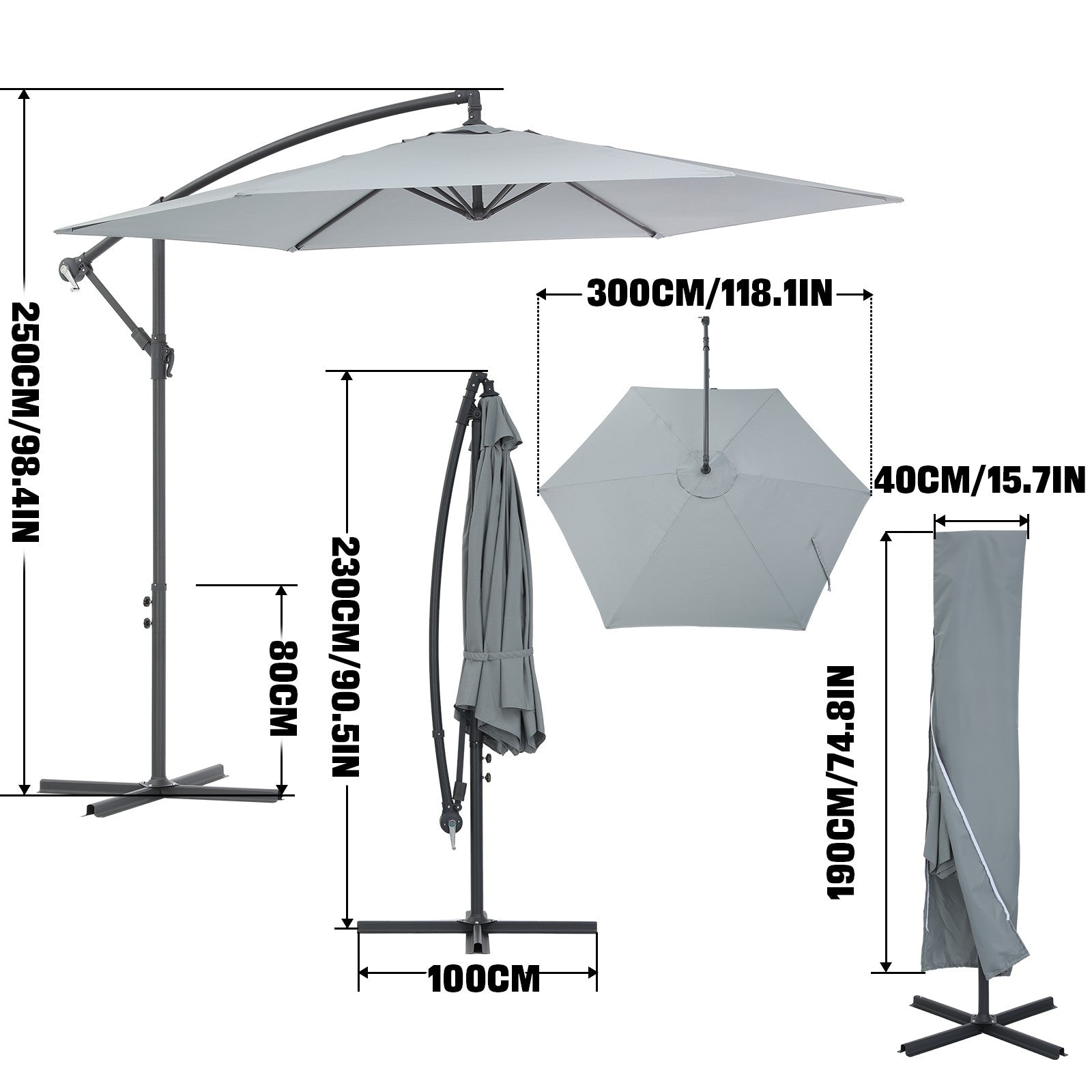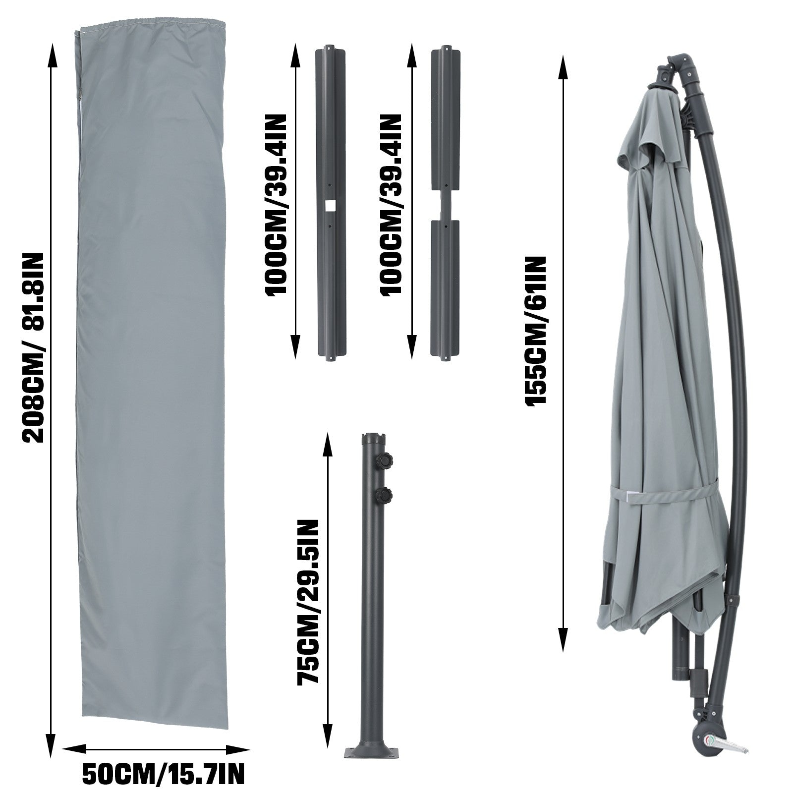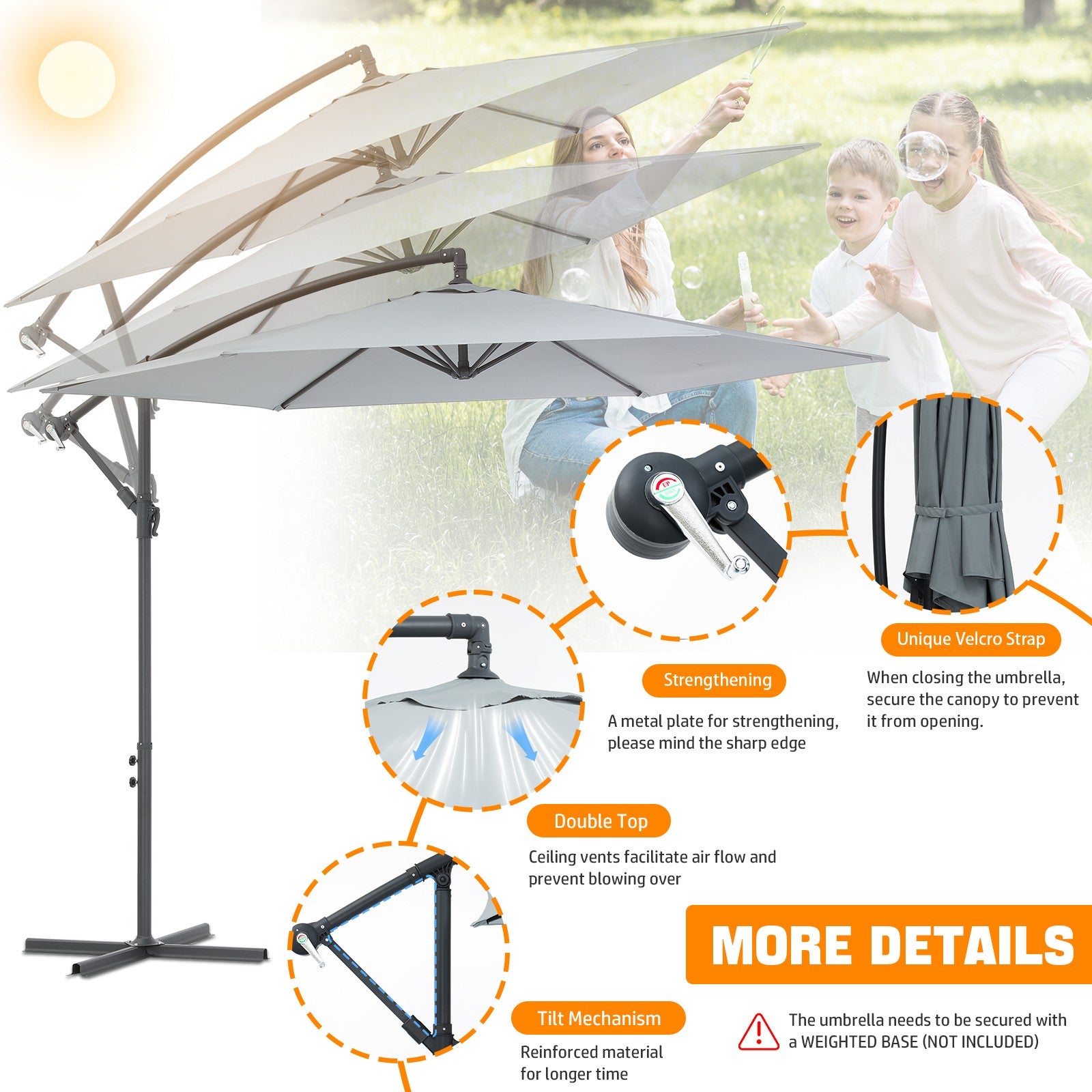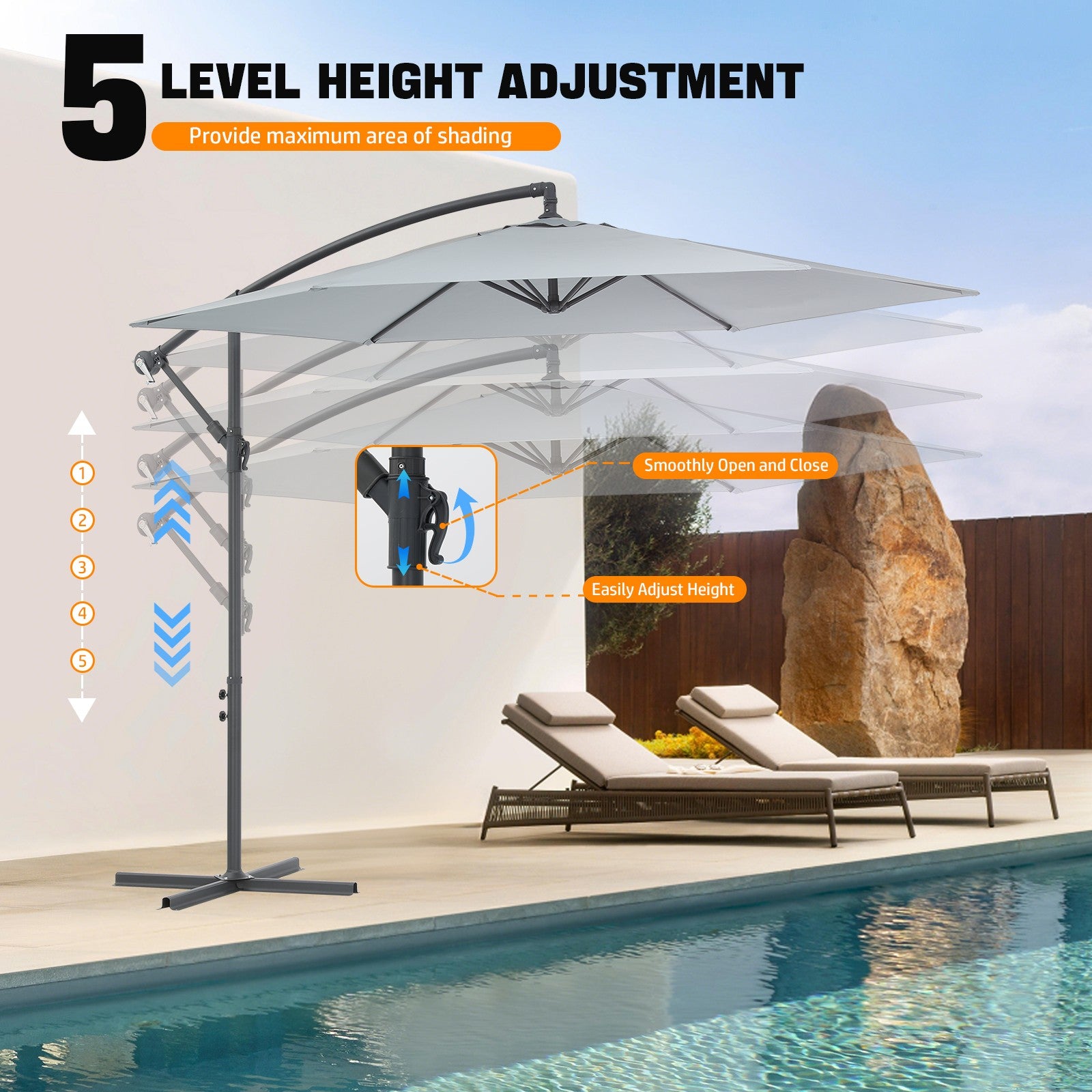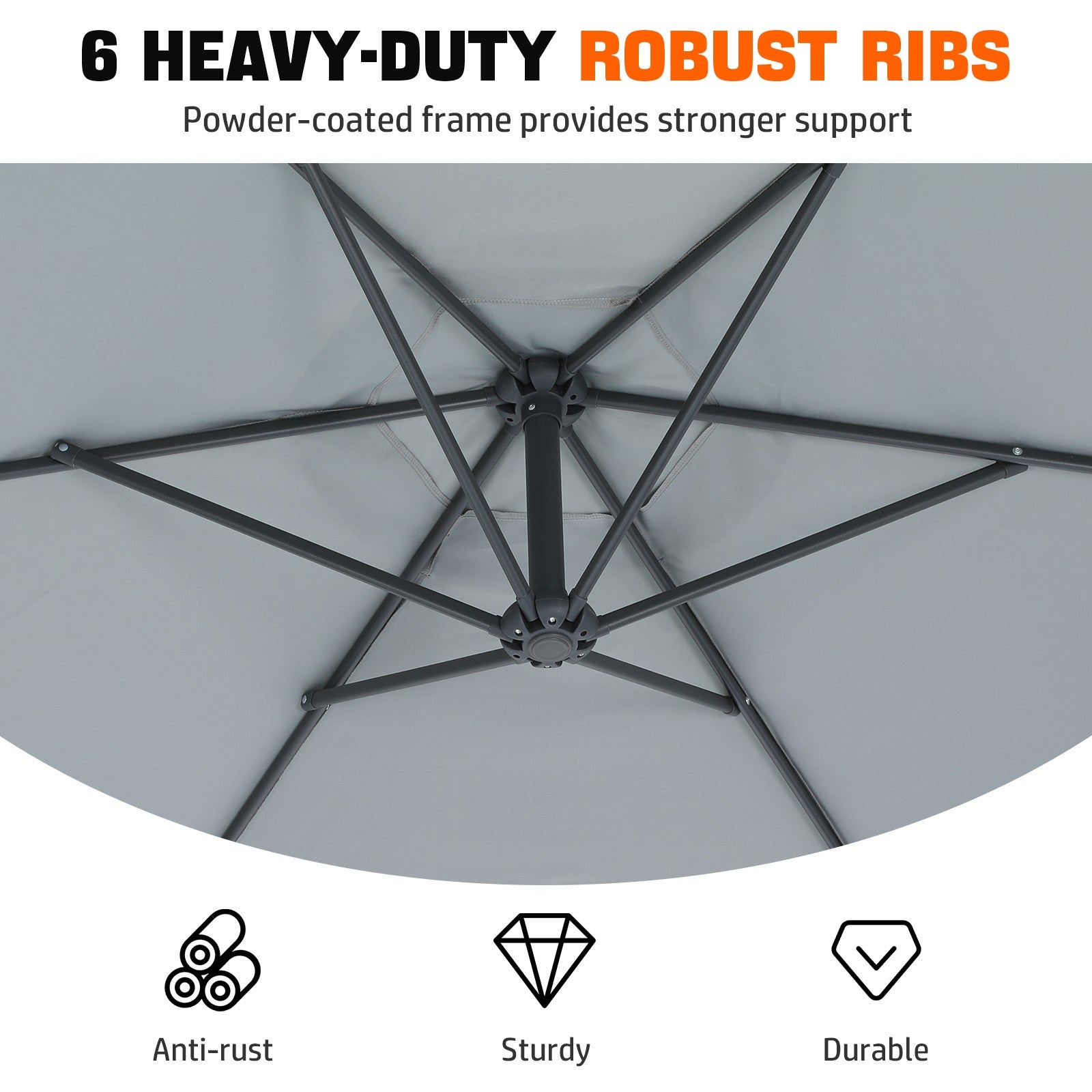10ft Sunshade Outdoor Cantilever Patio Umbrella 6 Sturdy Ribs for Garden Kdlioyk