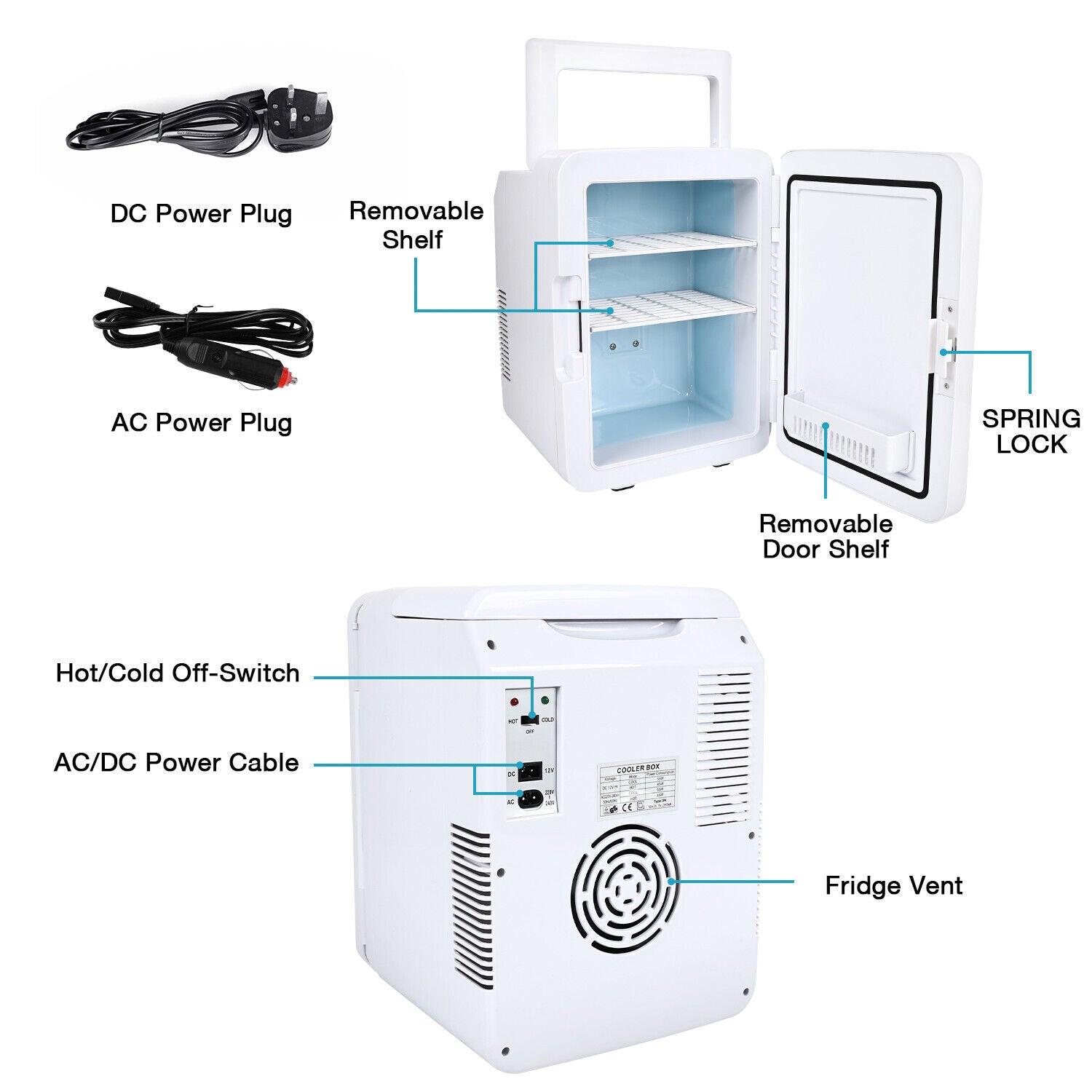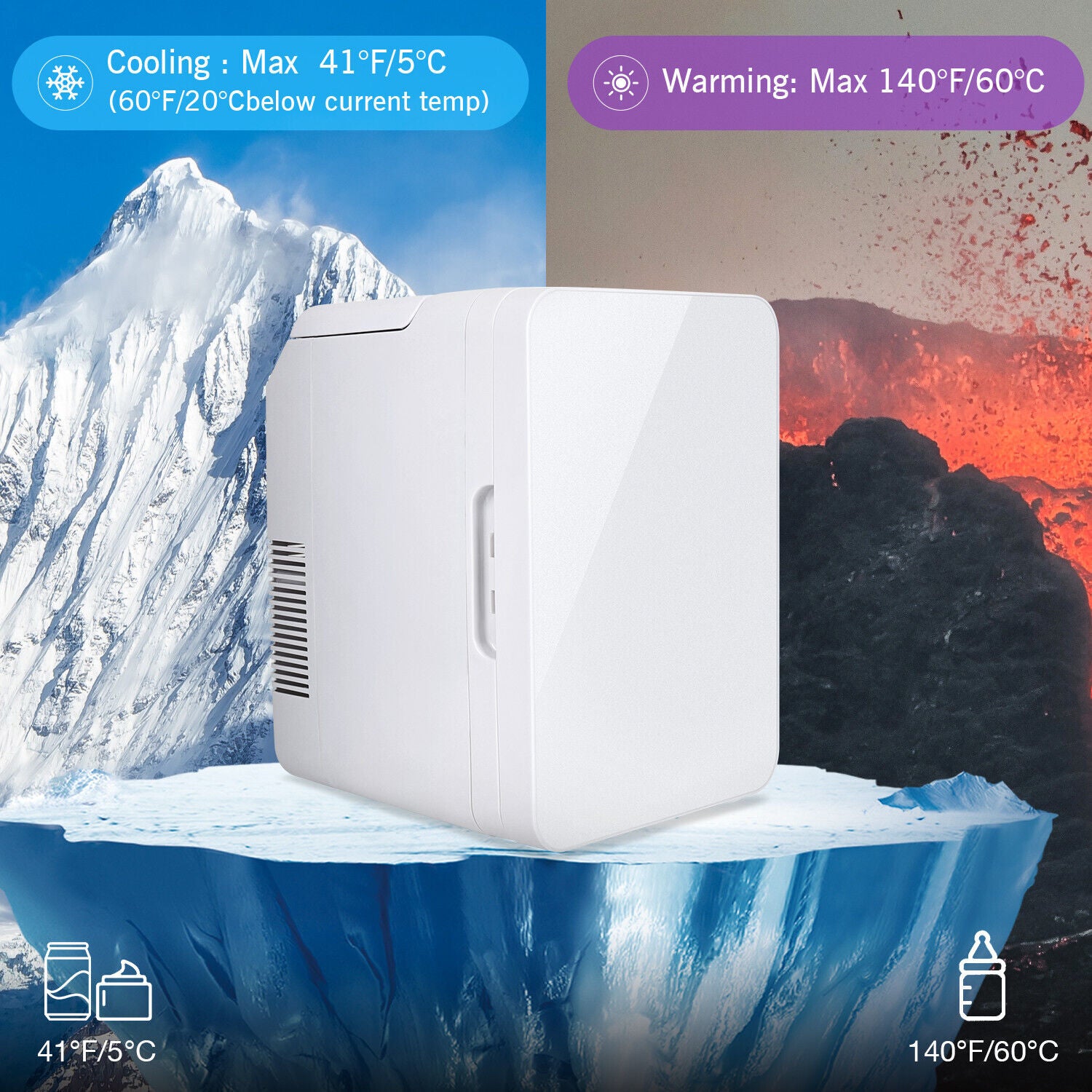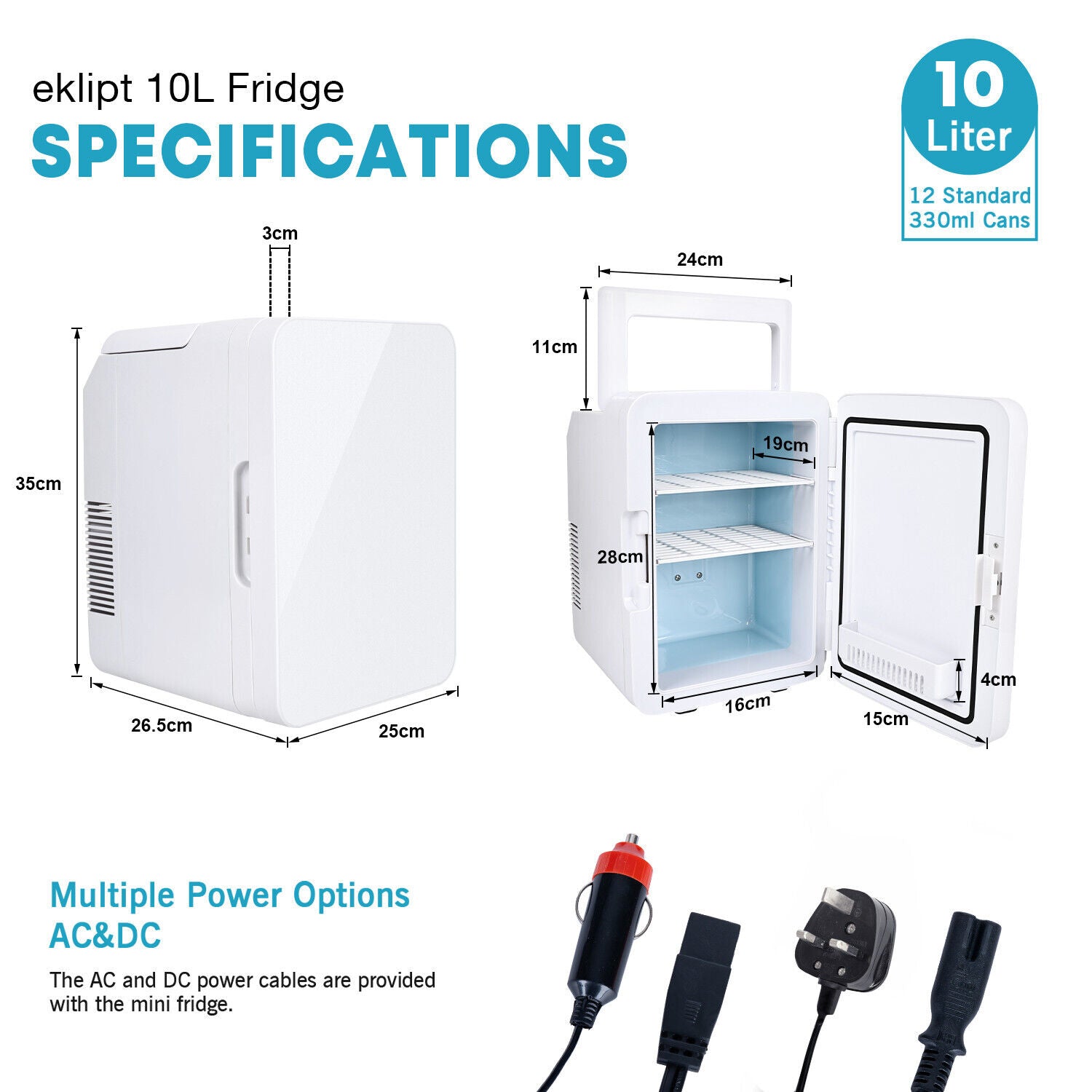 10L Portable Mini Fridge Table Top Electric Small Cooler White Ice Box Bedroom