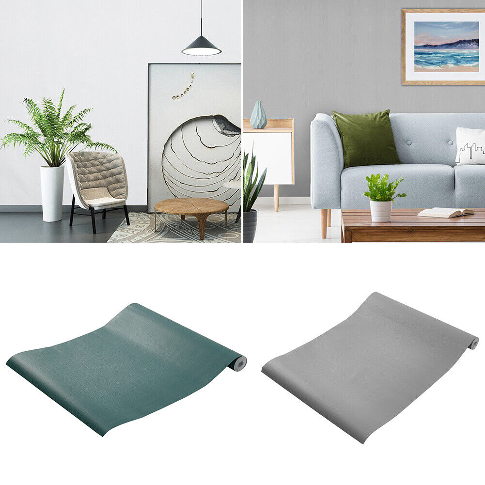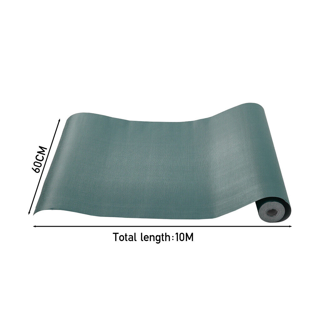10m Plain Green Linen Textured Wallpaper Self Adhesive Waterproof Wall Stickers