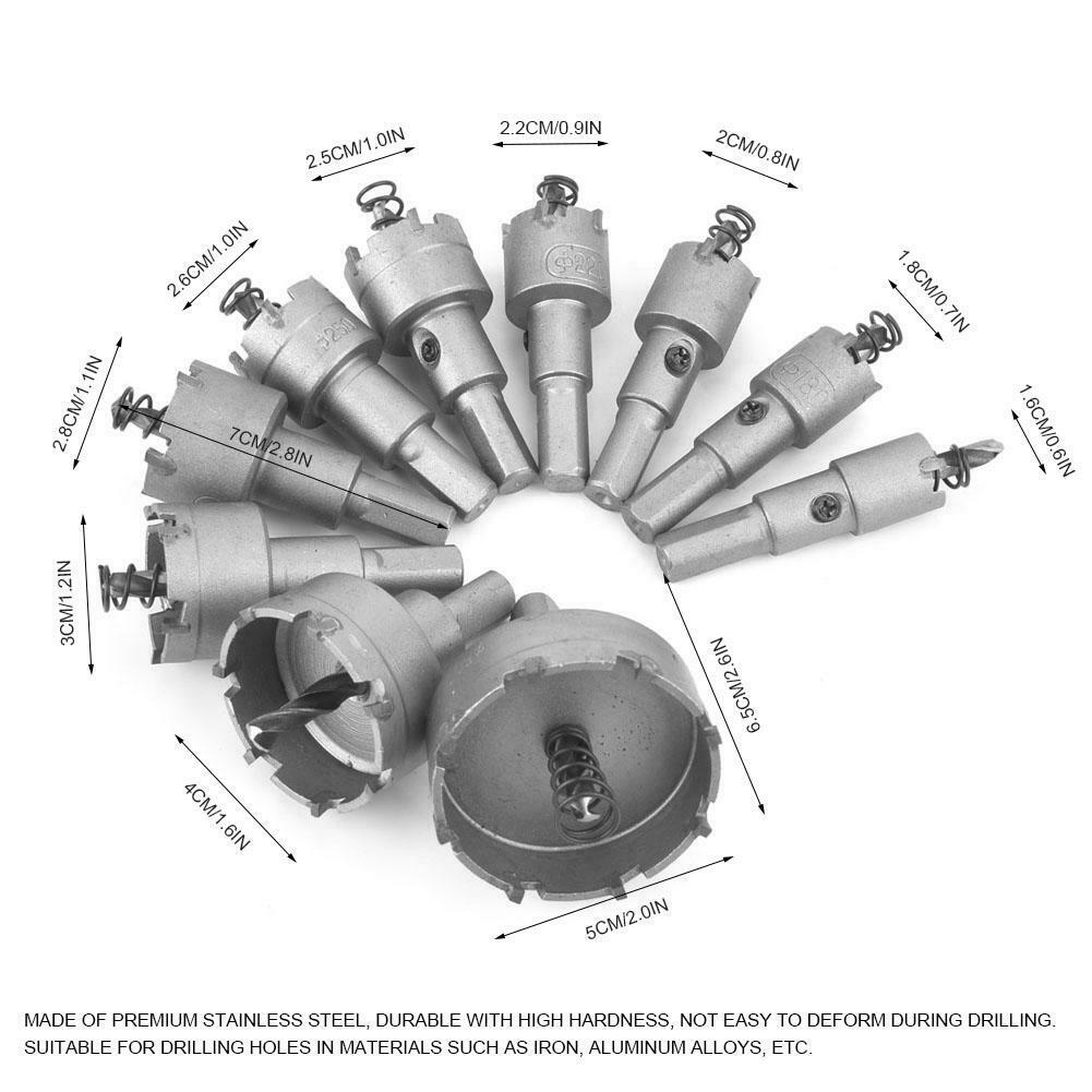 10pc Stainless Steel TCT Hole Saw Cutter Drill Bits Drilling Set for Metal Alloy
