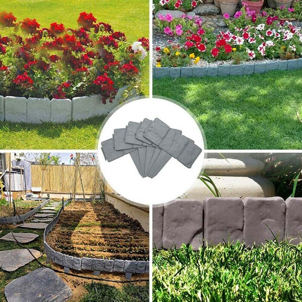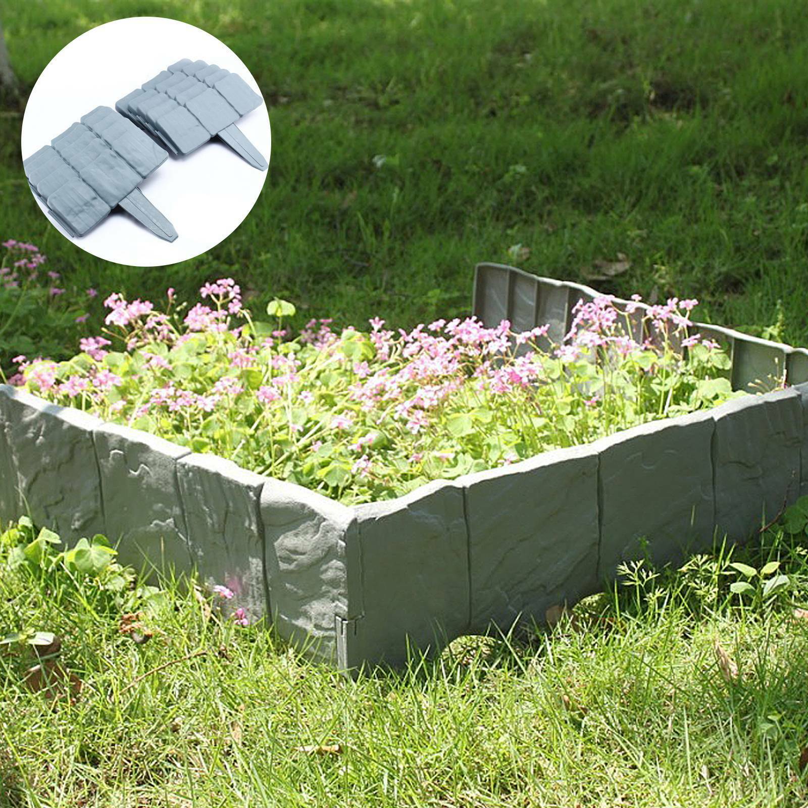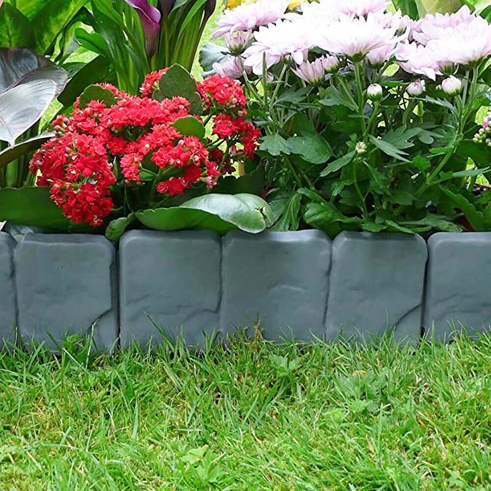 10pcs Grey Cobbled Stone Effect Plastic Garden Lawn Edging Plant Border 2.5m UK